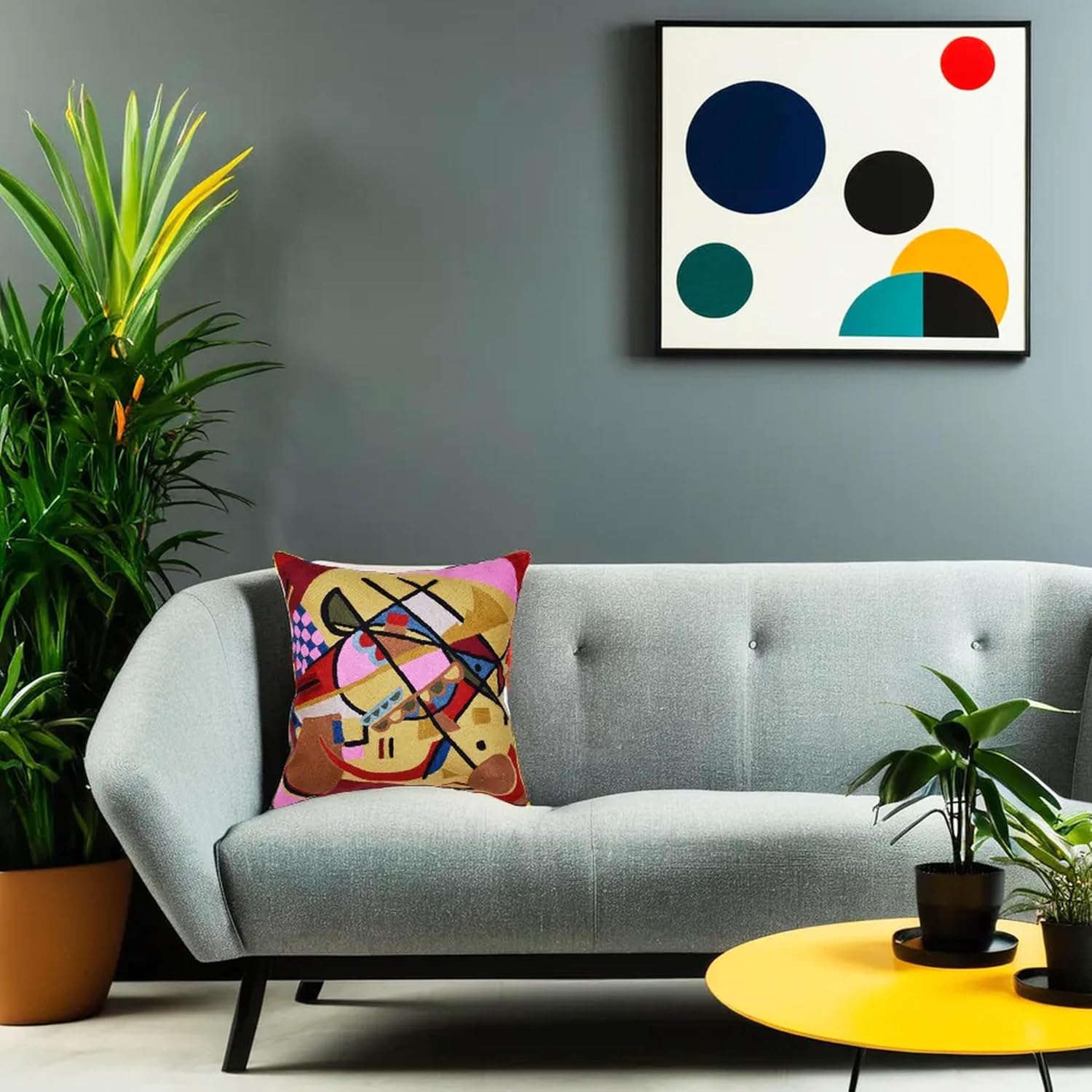 - 👍 PREMIUM NATURAL MATERIALS: Our soft all modern decorative pillows are made of premium organic natural materials. Front - Hand embroidery: 100% Soft Wool, Backing: 100% Cotton Canvas. This needlework embroiderd accent pillow can be used as a mid century modern pillow or as a modern farmhouse pillowcase. Our unique Kandinsky inspired abstract pillows are truly hand embroidered, breathable, soft and comfortable, and easy to care.