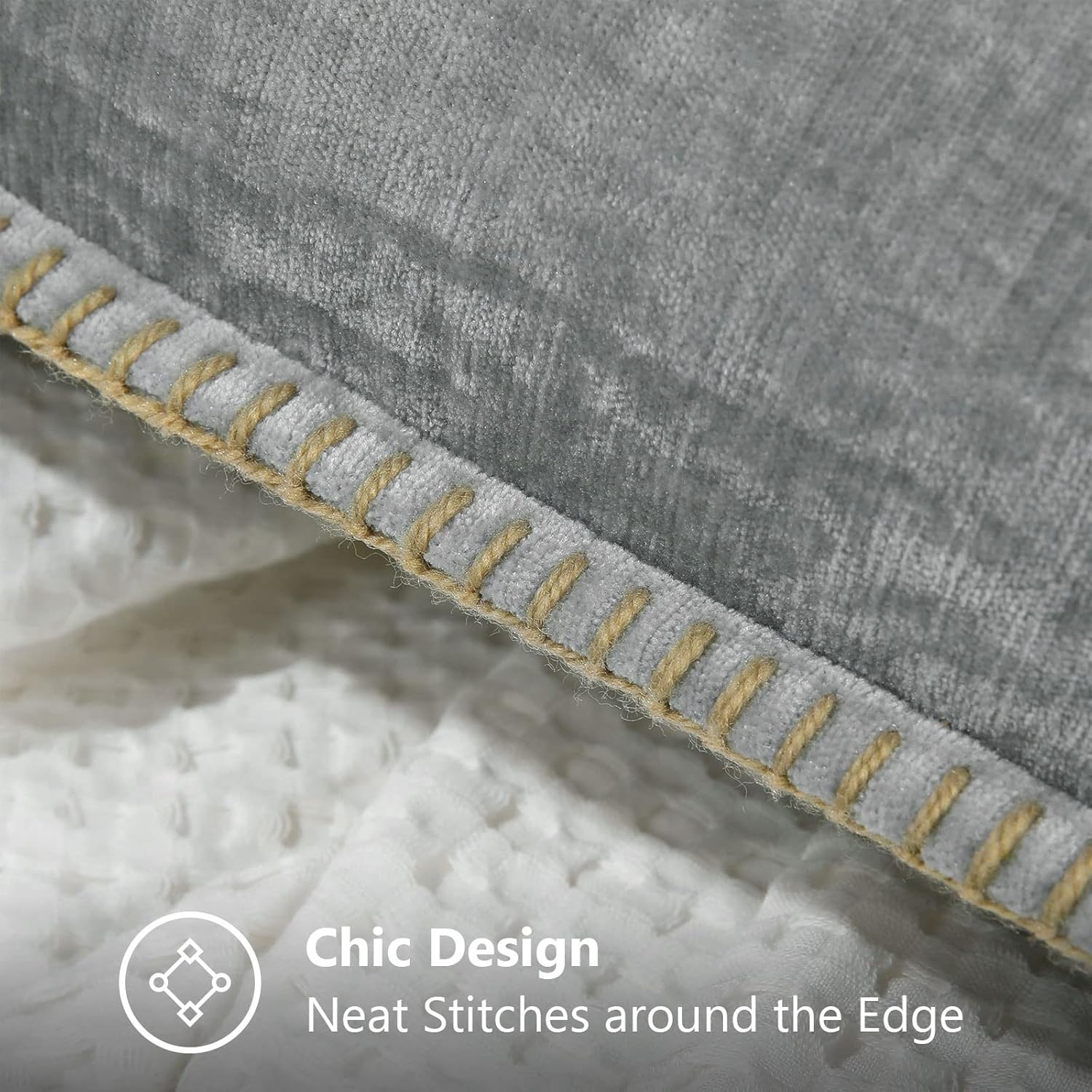 decorUhome Chenille Soft Throw Pillow Covers 24x24 Set of 2, Farmhouse Velvet Neutral Decorative Euro Pillow Covers with Stitched Edge for Couch Sofa Bed Home Decor, Neutral Gray