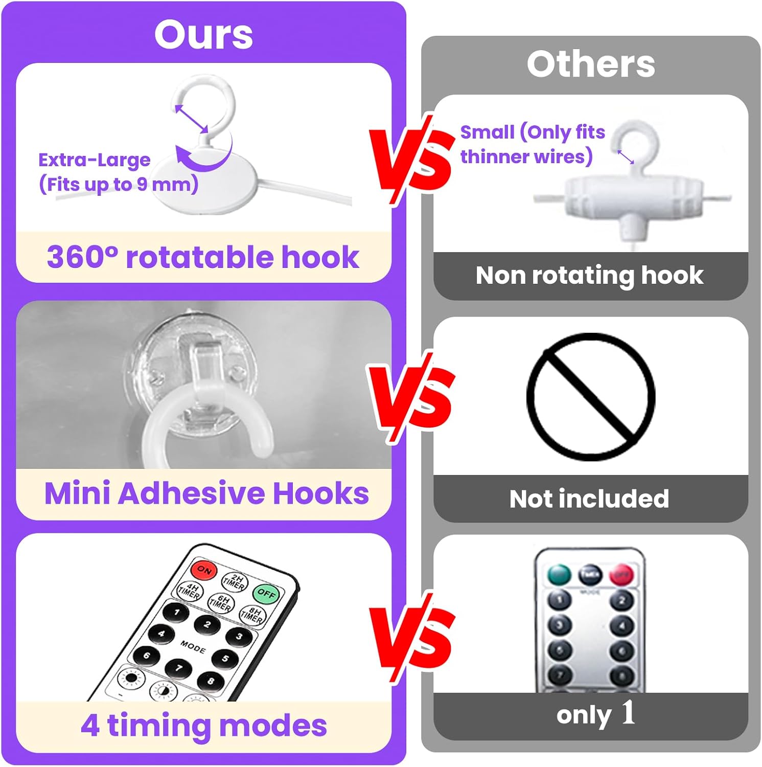 - 【8 Light Settings & Timer Remote】: Unlike others, our 17-Keys remote added 4 timing modes (2/4/6/8 hours on, 22/20/18/16 hours off). 8 different flash modes to choose from, and you can adjust the brightness of the lights by pressing "dim" ,“+” and "-". That are all controlled easily by a wireless remote at 10~15 meters, aim at the USB receiving direction when you press. All is in your control.