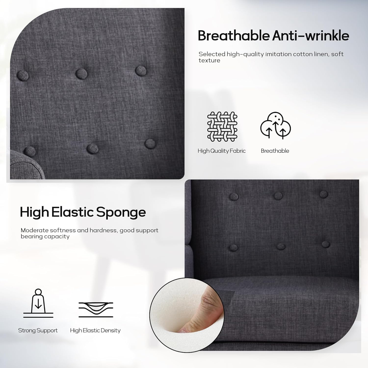 - Modern Style Design: The living room chair is designed with a simple and classic appearance to match any interior decoration style of your home. The tufted buttons of the living room chair back cushion are natural and the fabric is soft to the touch. Also available in six colors, adding a classic flair to your room is the versatile decorative chair you use