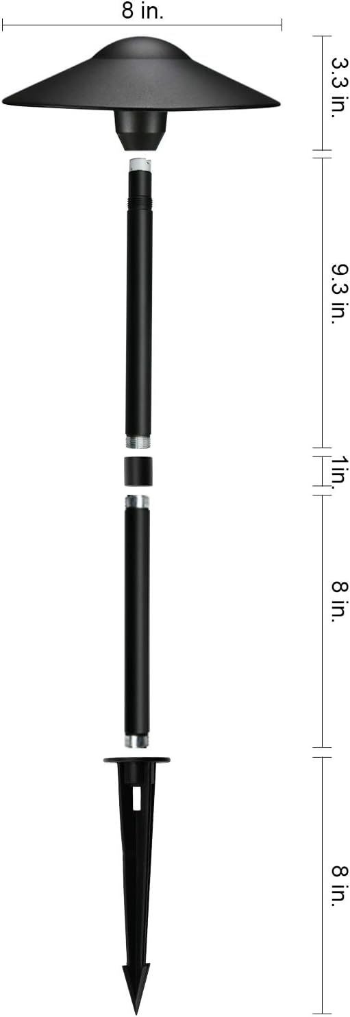 - EASY TO INSTALL β This landscape path lights with 8inch heavy-duty ABS ground stake and Two 9inch aluminium stems which can be connected easily. You can decide your path light's height by connecting one stem or two stems. Light Fixture pre-wired with UL listed direct burial Wire/Cable, you can connect the fixture easily. And extra cable connector required for installation(NOT INCLUDED with this fixture).