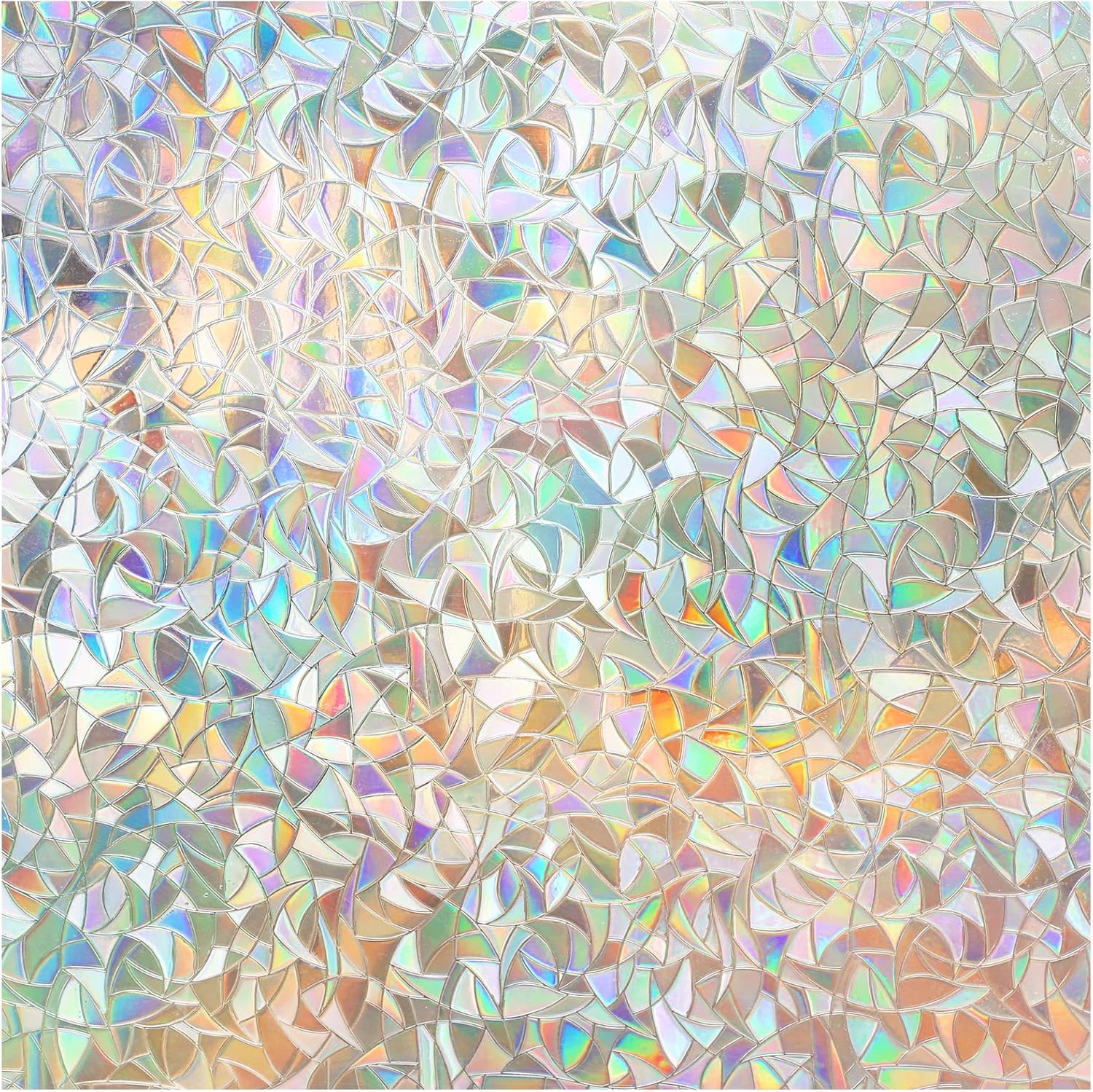 - Rainbow Effect: Crafted by 3D laser process, this rainbow prism window film will catch the light and create a rainbow effect when the sun hits the decal. The decorative window cling itself does not actually have any color, and the rainbow effect depends on the angle and intensity of the sunlight. Also, it classes up the room and makes the window look like stained glass without the expense of a custom stained glass window