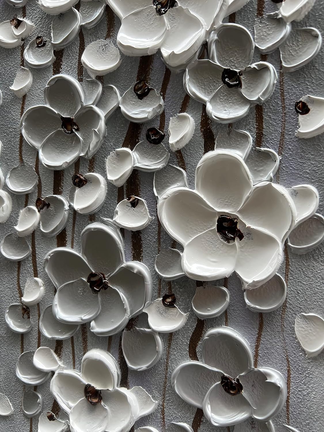 Epicler Modern Art Oil Painting,46x23 inches White Flower Wall Art Painting, Abstract Canvas Wall Art for Home Wall Decoration