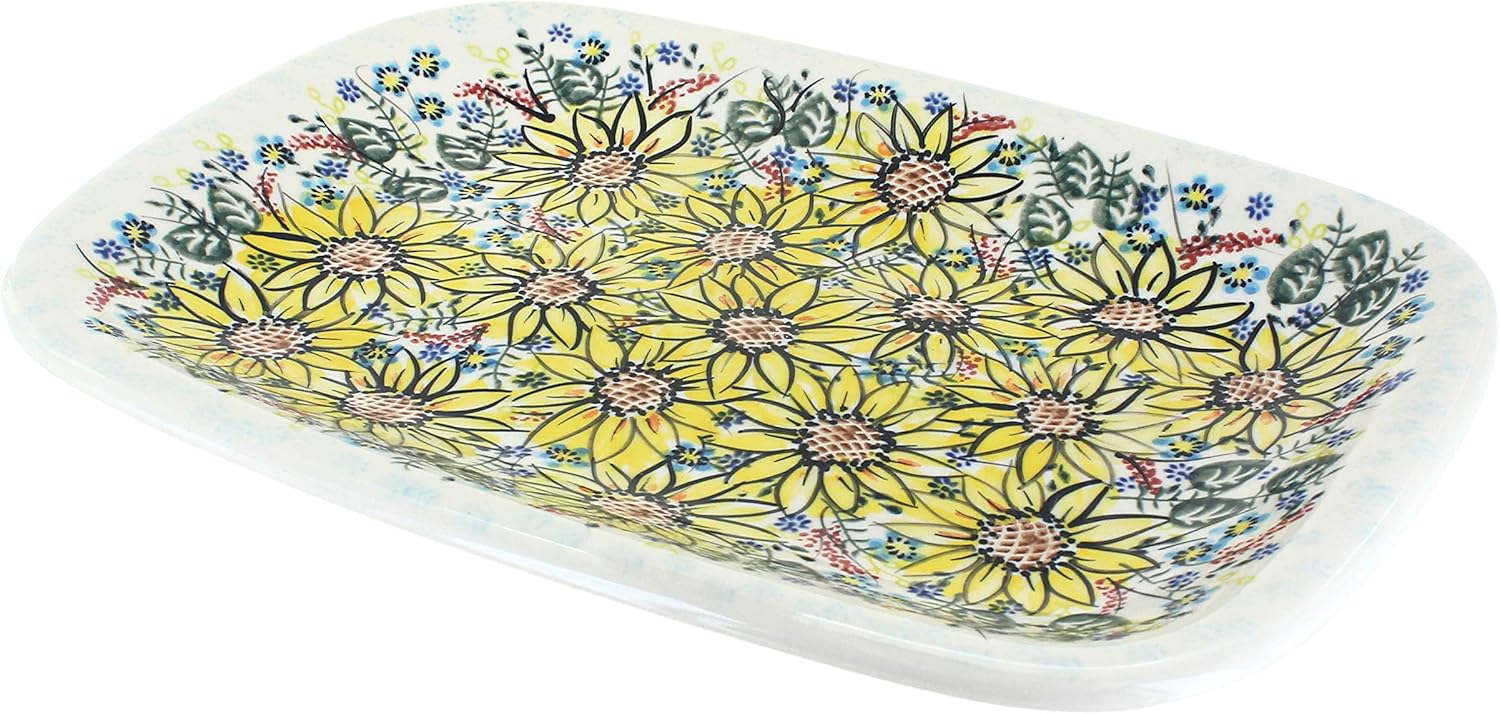 Blue Rose Polish Pottery Sunflower Maze Large Rectangular Serving Platter