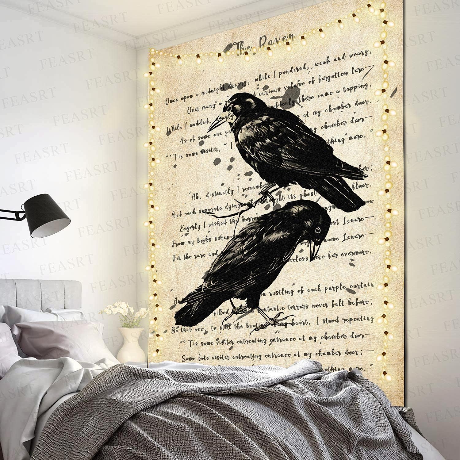 FEASRT Upgrading Dictionary Art Wall Tapestry The Raven Nevermore Edgar Allan Poe Hymn Decor 60x80 Inches for Living Room Bedroom Home Dorm GTQQAY1539