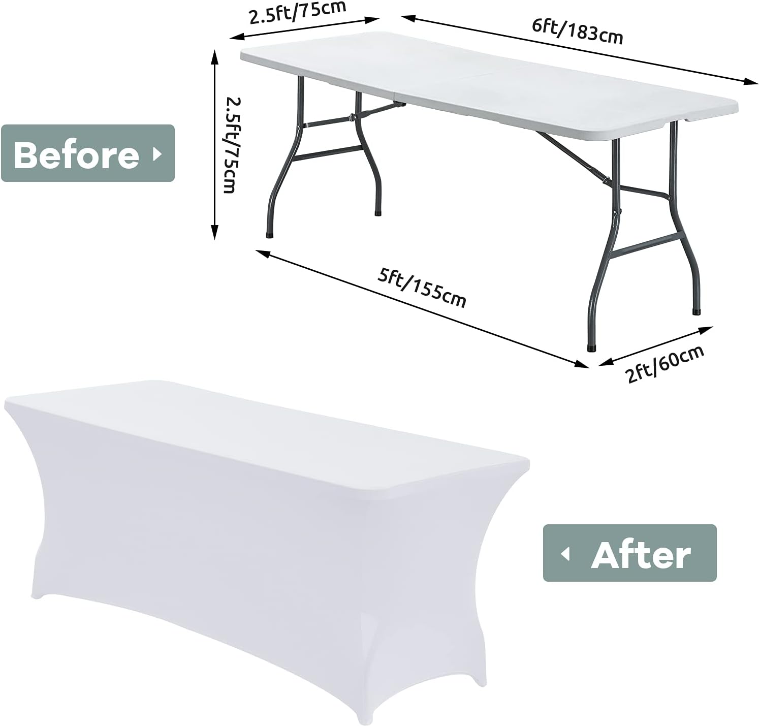 - [Dimensions]:The 6 foot tablecloth fits tables that are 72" Length X 30" Width X 30" Height; It is always fitted and tight for Standard Folding Tables-Universal Rectangular Fitted Tablecloth Protector