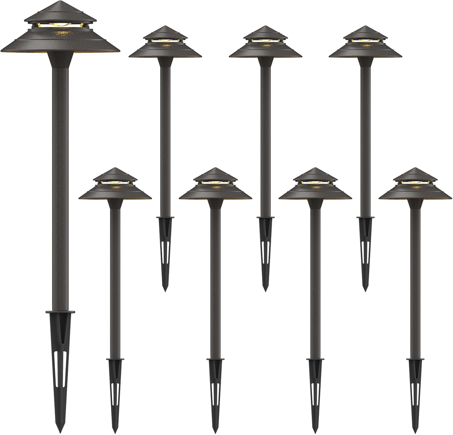 GOODSMANN Pathway Lights Kits 3W LED 8PK Outdoor Low Voltage Landscape Lighting 180 Lumen Hardwired 2 Tier Pagoda Path Light 3000K Warm White Metal 12V Electric Sidewalk Walkway Lights with Connectors