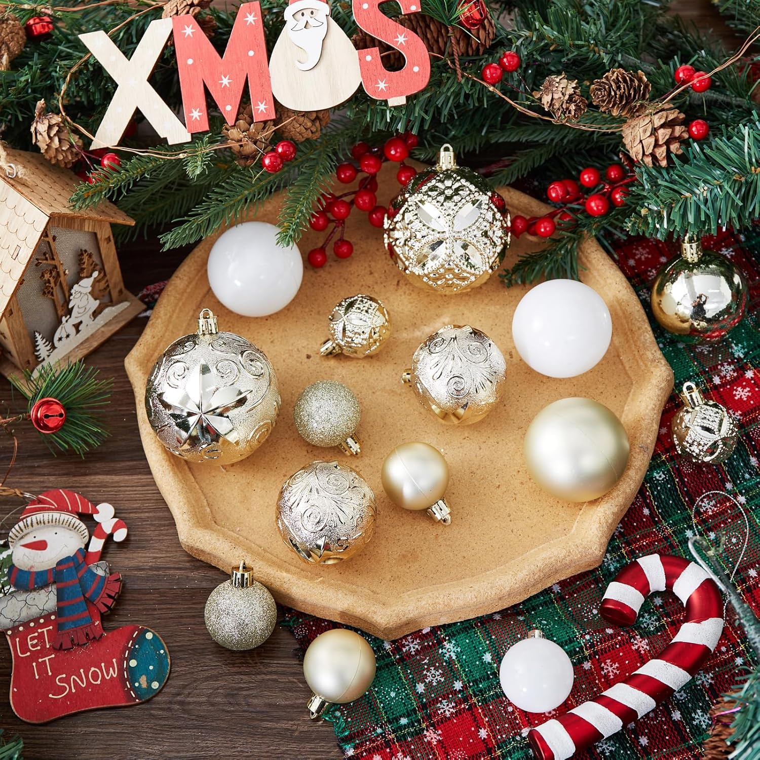 87-Pack Shatterproof Christmas Ball Ornaments Set, Christmas Tree Decorations with Hand-held Gift Package for Xmas Tree Holiday Wedding Party, Champagne