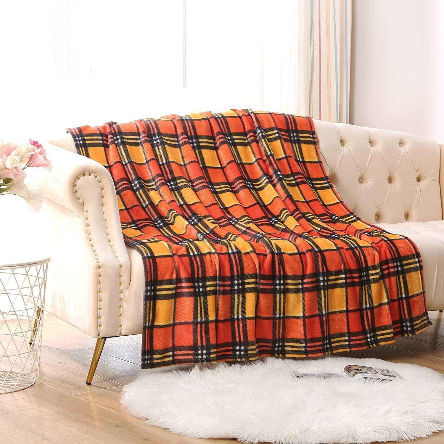 MERRYLIFE Throw Blanket for Couch Orange Plaid Chair Throw Blanket| Soft Decorative Ultra-Plush Colorful| Throw Size Travel Blanket Plush|(50" 60", Harvest Plaid)