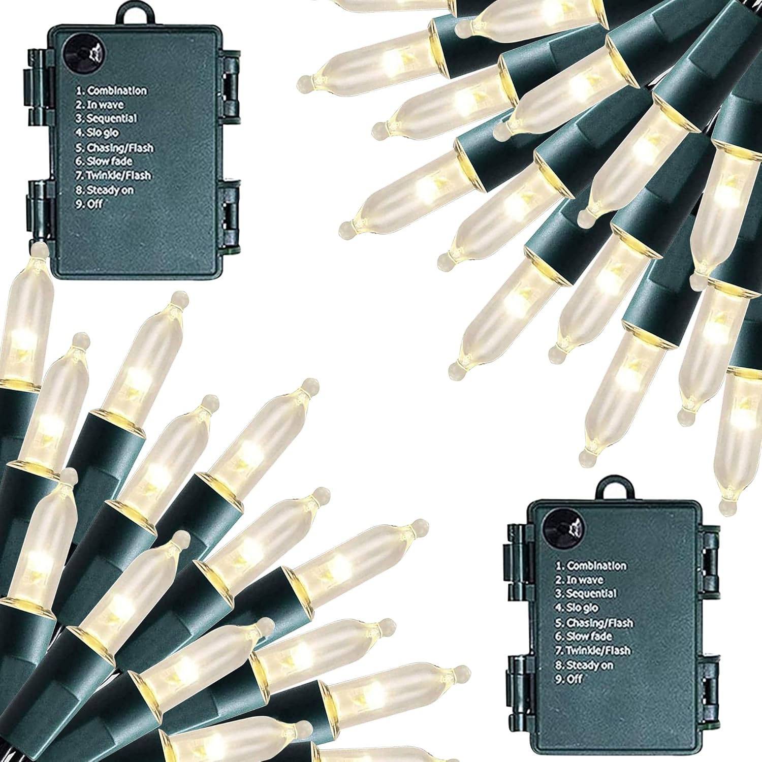- 8 Lighting Modes: Dazzle Bright mini string lights has 8 different lighting methods, including combination, in wave, sequential, slo glo, chasing/flash, slow fade, twinkle/flash, steady on. Press the button on the battery box to select the lighting mode you like.