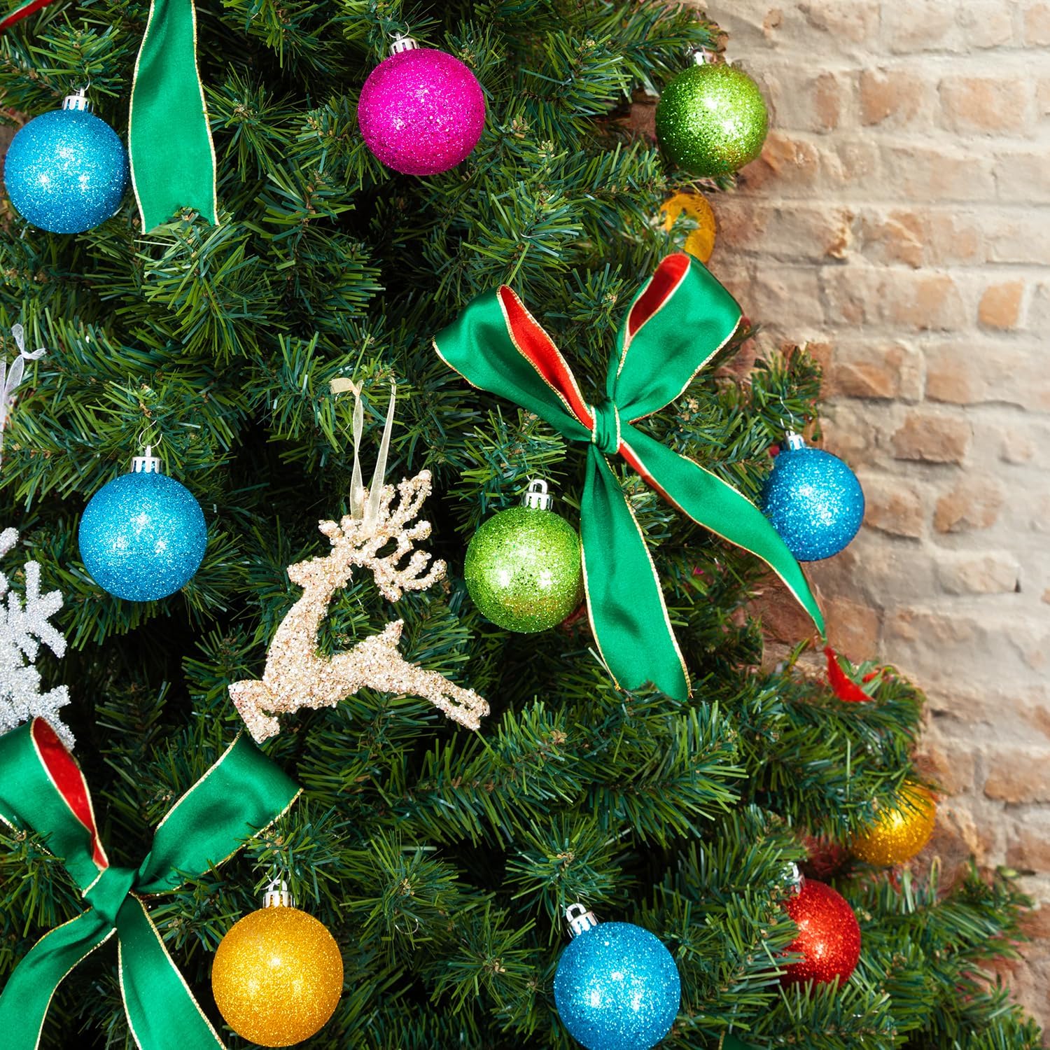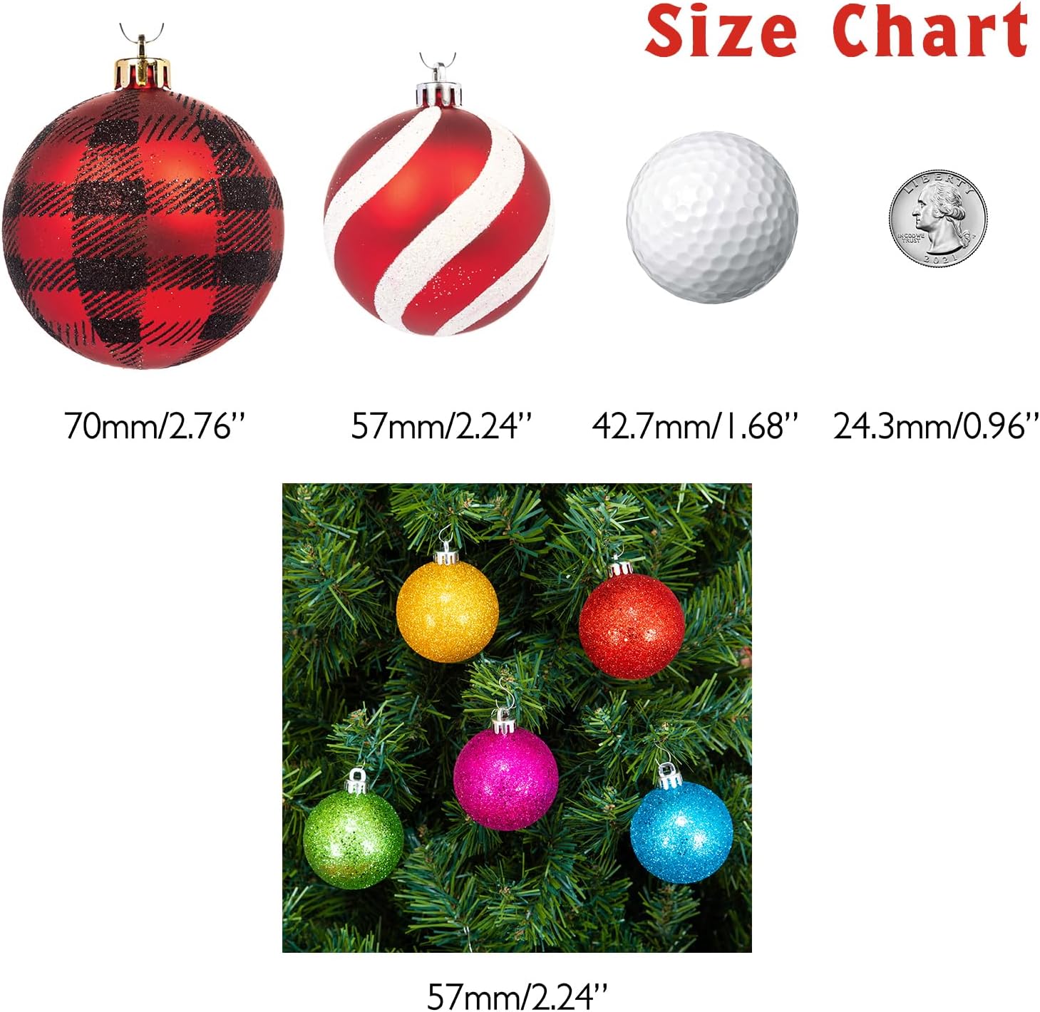 Every Day is Christmas Ornaments, Shatterproof Christmas Tree Ornament Set, Christmas Balls Decoration 50 Count (2.24"/57mm, Glitter Rainbow)
