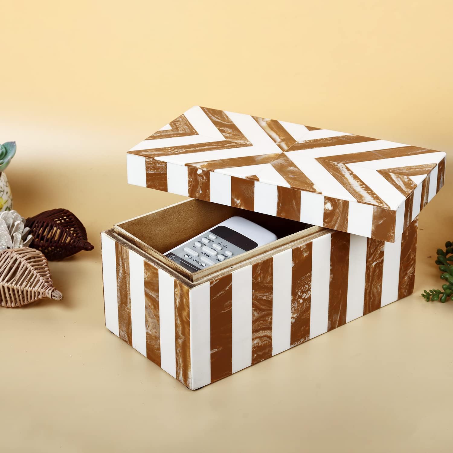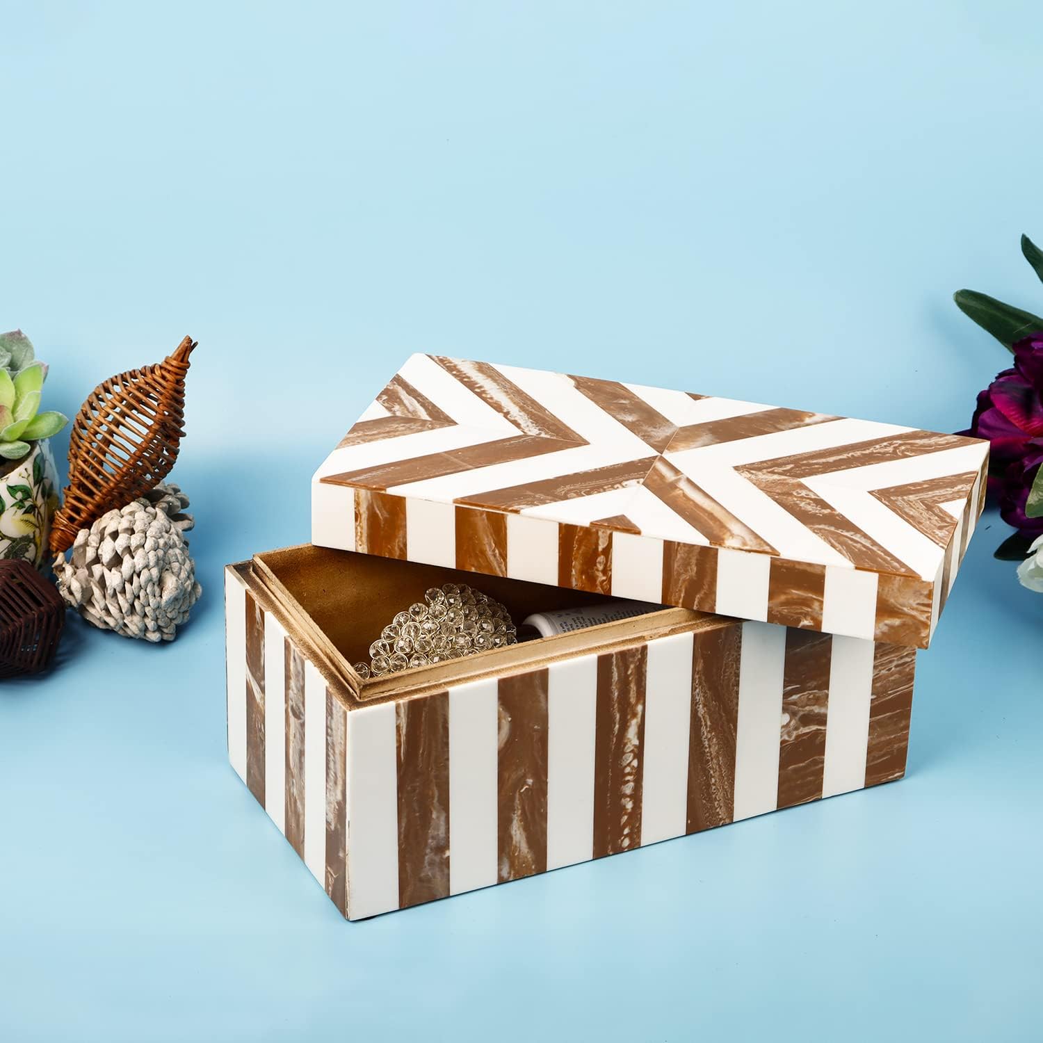 Handicrafts Home Handmade Chevron Pattern Decorative Box - Storage Organizer, Decor Centrepiece, Memory Keepsakes, Home Decor - Boho Style Treasure Box, Multipurpose Gift - Brown, 10x5x5