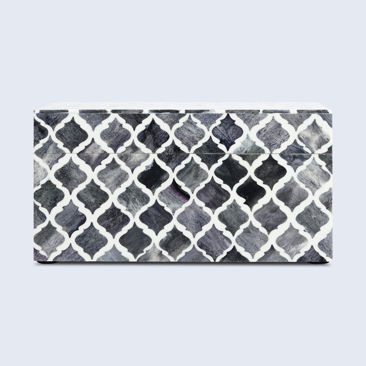 Handicrafts Home Handmade Moroccan Pattern Inspired Decorative Box - Large Storage Organizer for Neck Chains, Watches, Memory Keepsakes - Boho Style Treasure Box, Multipurpose Gift - Grey, 10x5x5