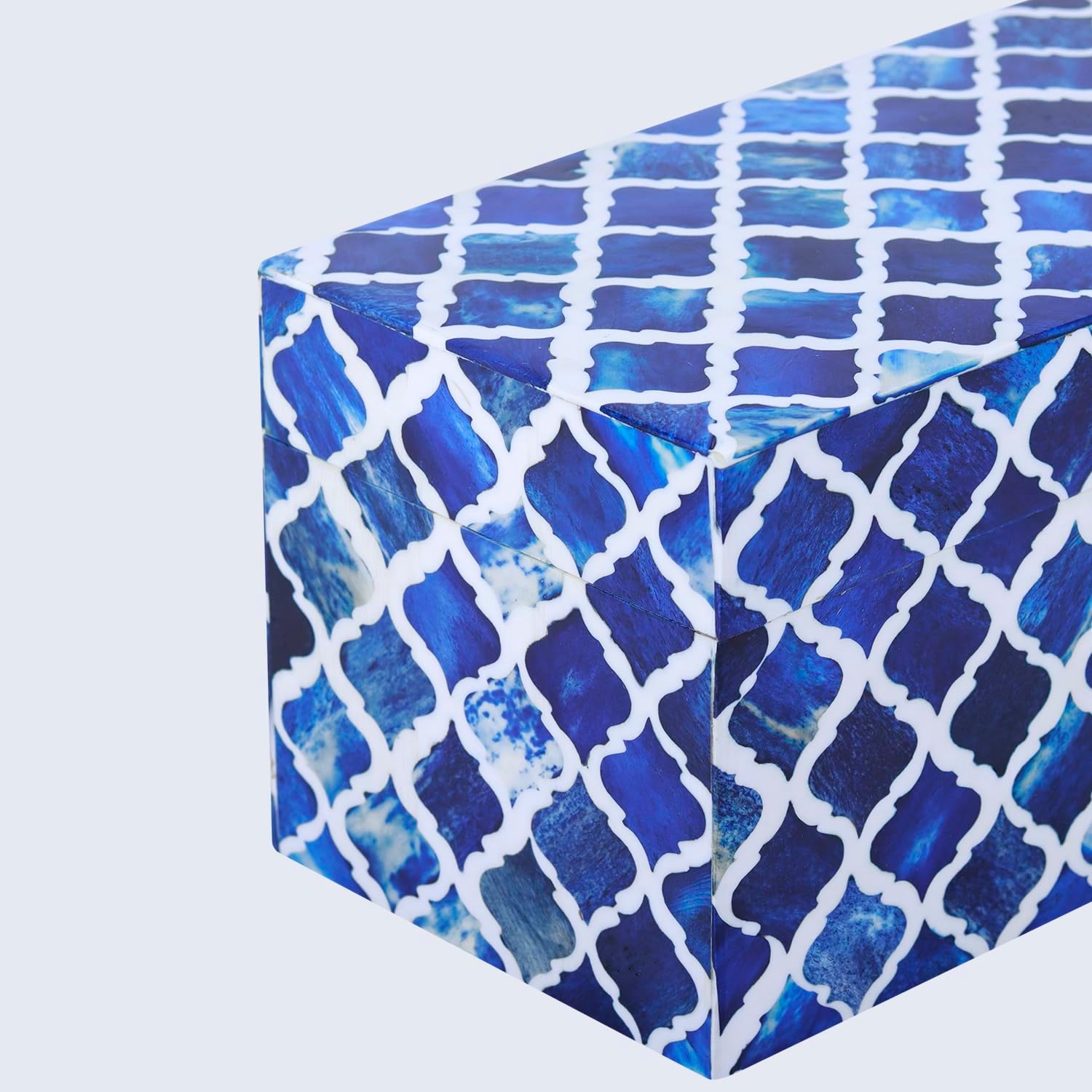 Handicrafts Home Handmade Moroccan Pattern Inspired Decorative Box - Large Storage Organizer for Neck Chains, Watches, Memory Keepsakes - Boho Style Treasure Box, Multipurpose Gift - Blue, 10x5x5