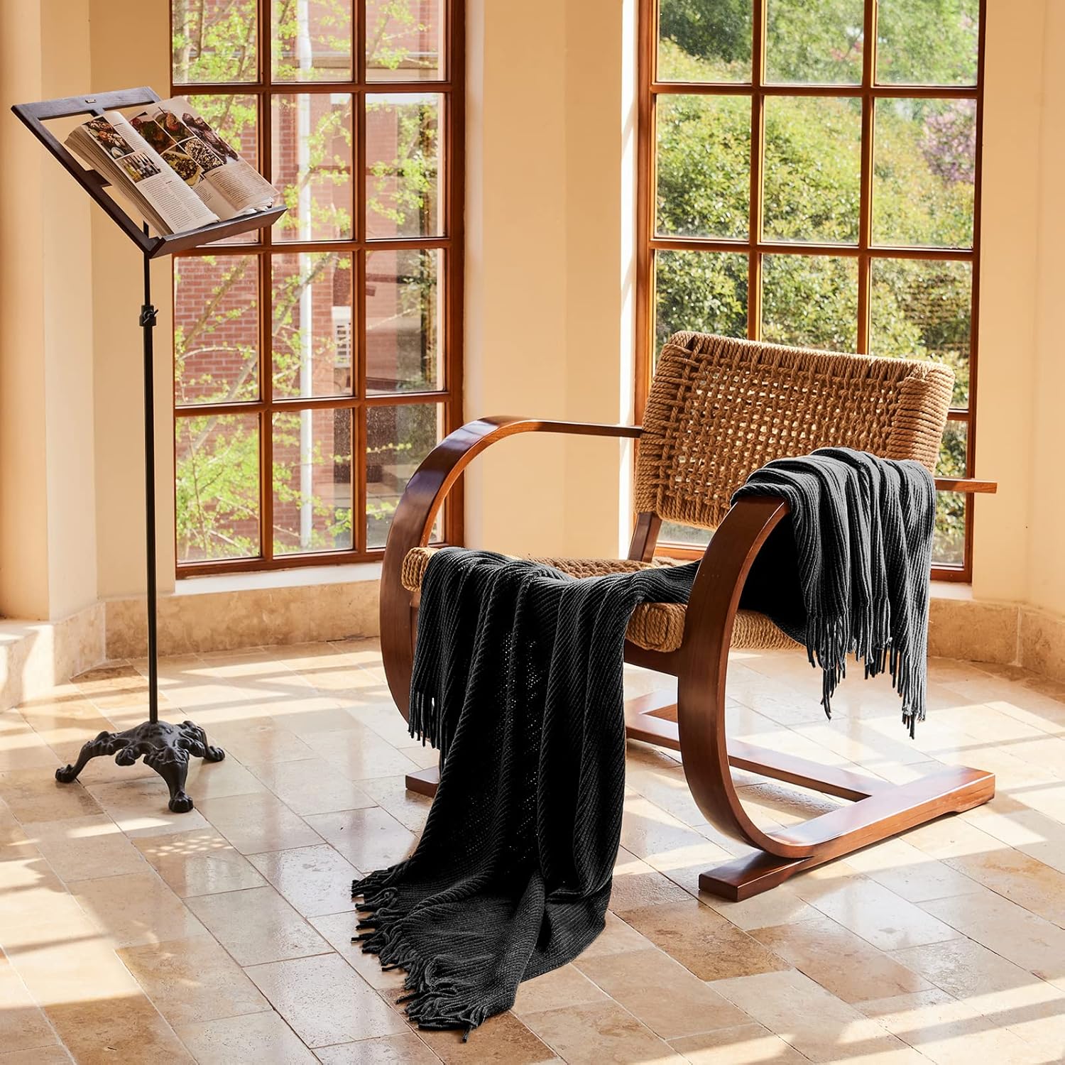 lifein Throw Blanket for Couch, Soft Boho Decor Bed Throw,Cozy Grey Knitted Chenille Small Farmhouse Lightweight Throw for Spring(Dark Grey,50 * 60")