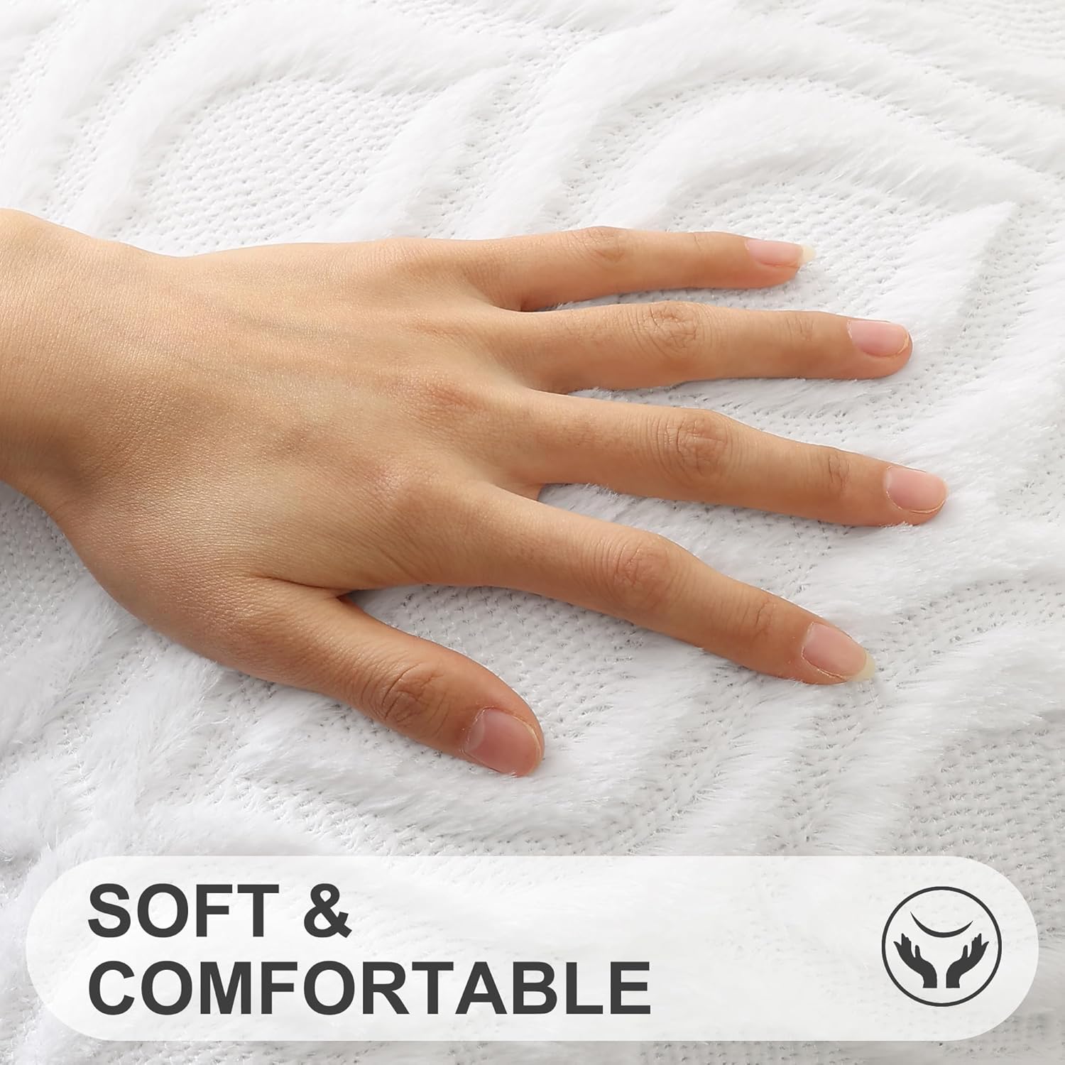 decorUhome Fall Throw Pillow Covers 18x18 Inch Set of 2, Soft Plush Decorative Faux Fur White Solid Couch Pillow Covers, Accent Farmhouse Neutral Square Euro Pillow Cases for Sofa Bed Living Room