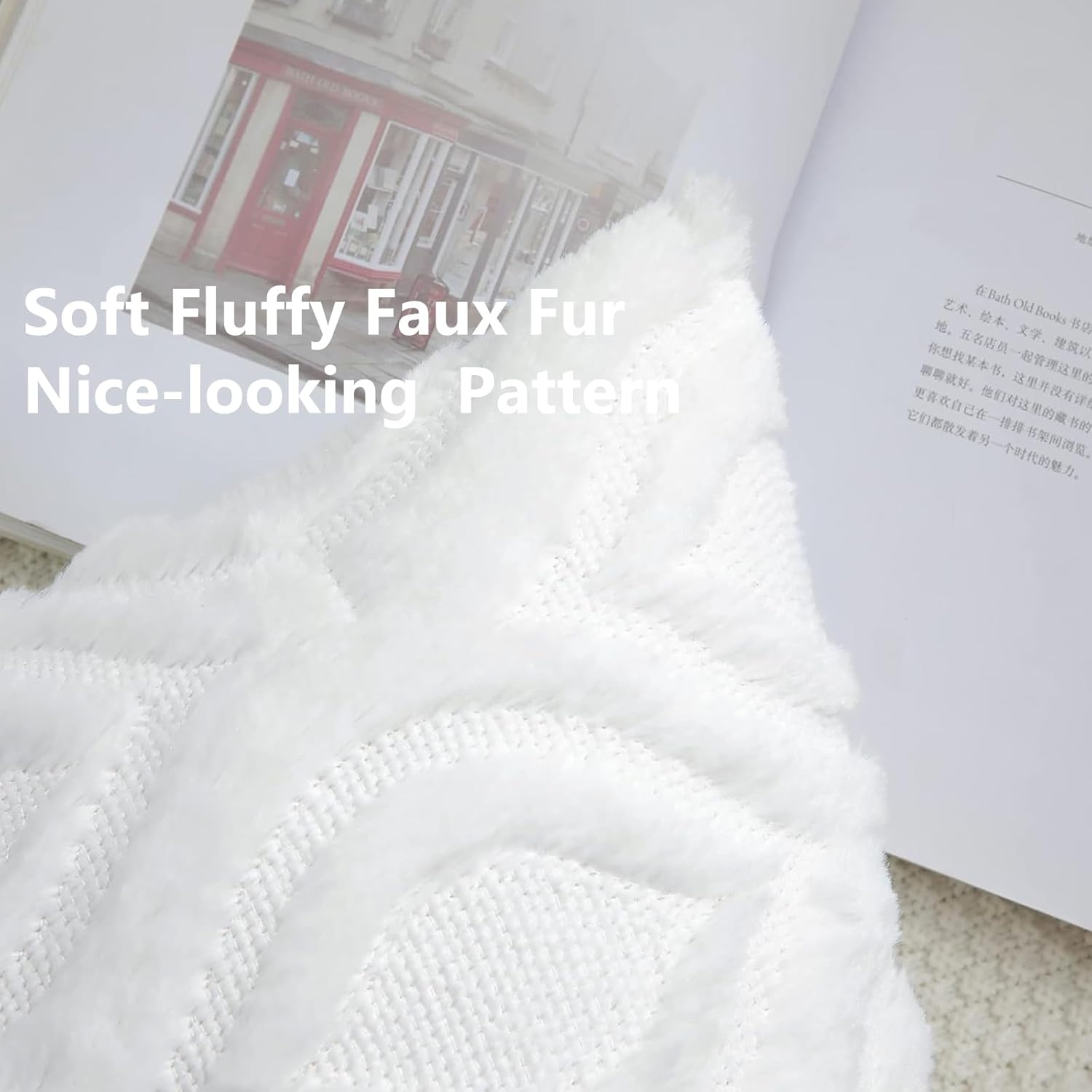 decorUhome Fall Throw Pillow Covers 22x22 Inch Set of 2, Soft Plush Decorative Faux Fur White Solid Couch Pillow Covers, Accent Farmhouse Neutral Square Euro Pillow Cases for Sofa Bed Living Room
