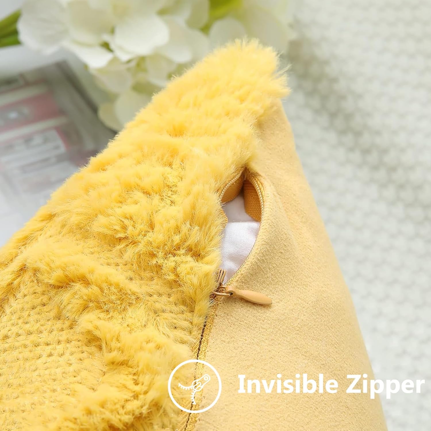decorUhome Throw Pillow Covers 16x16 Inch Set of 2, Soft Plush Decorative Faux Fur Mustard Yellow Solid Couch Pillow Covers, Accent Farmhouse Neutral Square Euro Pillow Cases for Sofa Bed Living Room