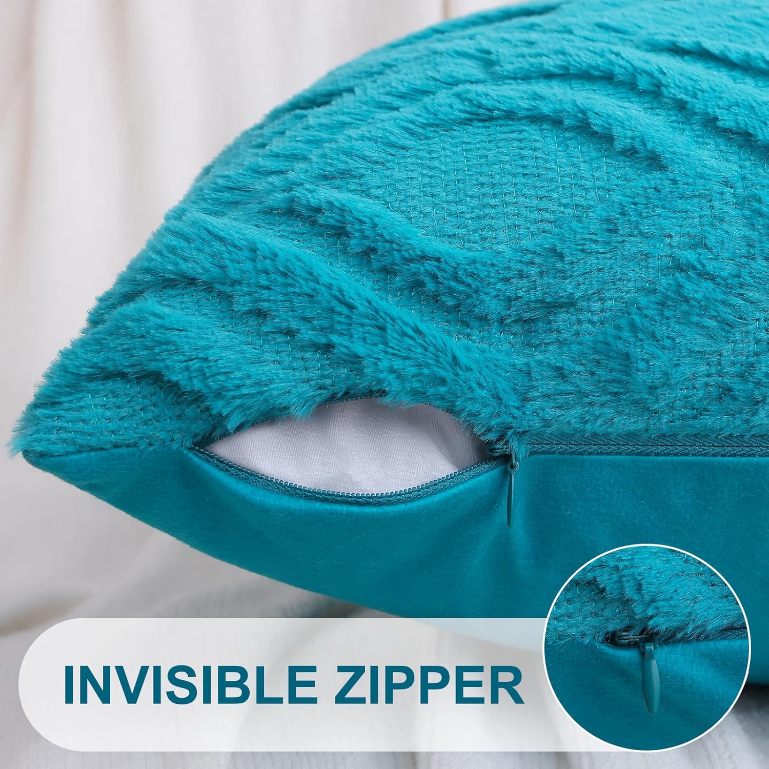 decorUhome Fall Throw Pillow Covers 22x22 Inch Set of 2, Soft Plush Decorative Faux Fur Teal Solid Couch Pillow Covers, Accent Farmhouse Neutral Square Euro Pillow Cases for Sofa Bed Living Room