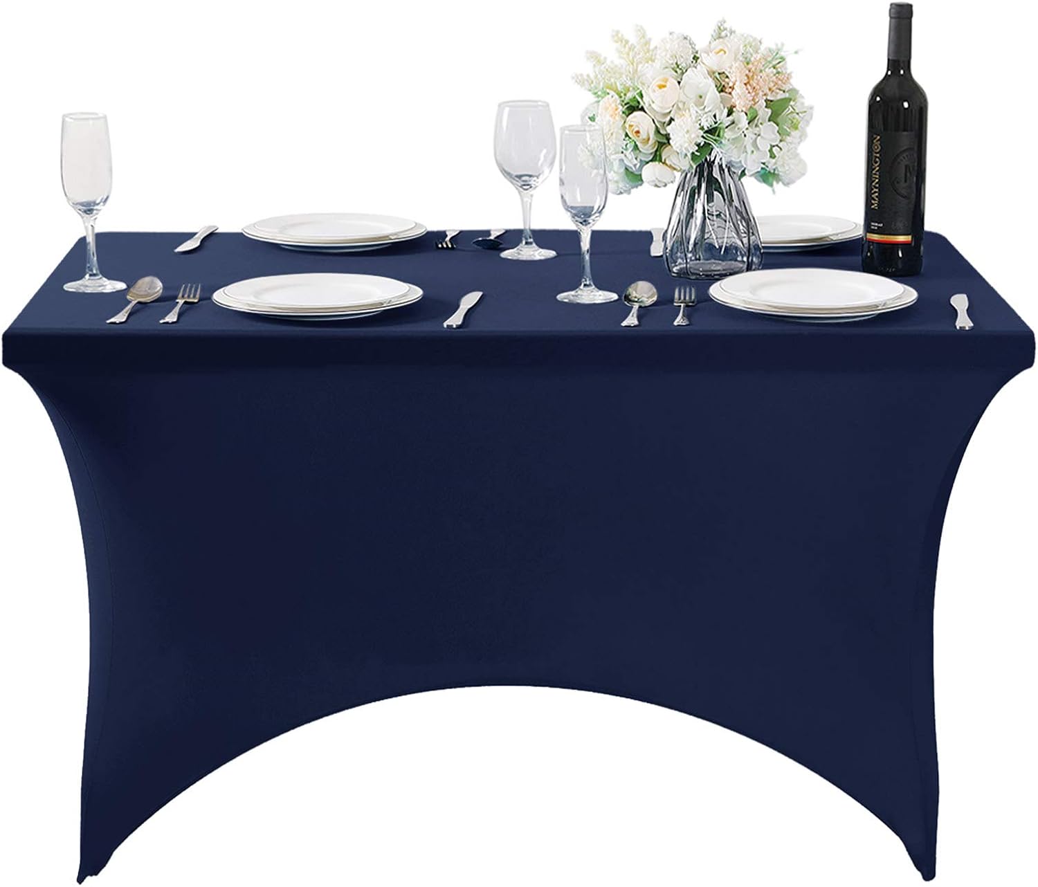 SuperO Waterproof Spandex Table Cover for 4FT Table Universal Fitted Stretch Tablecloth for Party, Banquet, Wedding and Events-Navy
