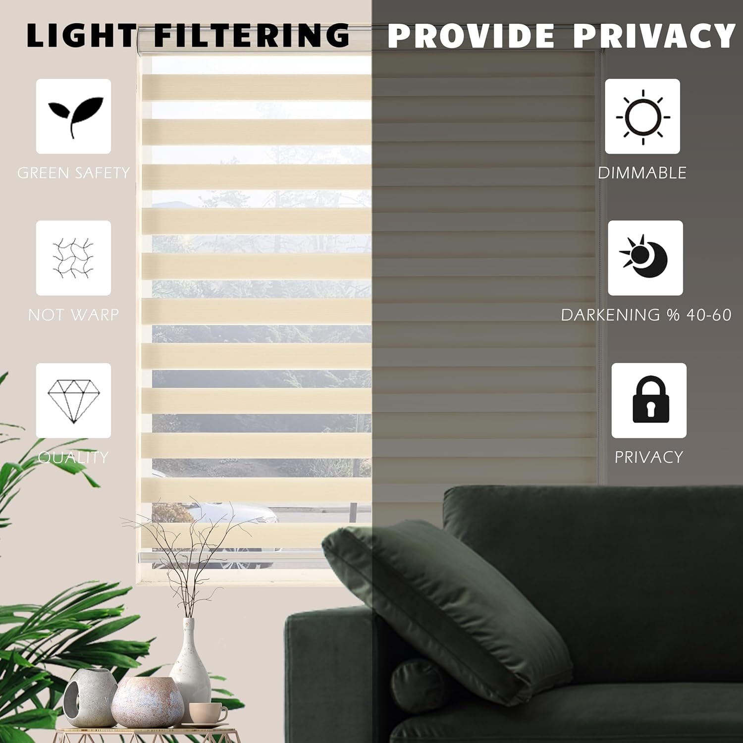 Zebra Blinds for Windows, Free-Stop Zebra Shades, Dual Layer Light Filtering Sheer Blinds for Indoor Windows, Roller Window Shades for Privacy, Easy Installation(31" W X 72" H, Cream)