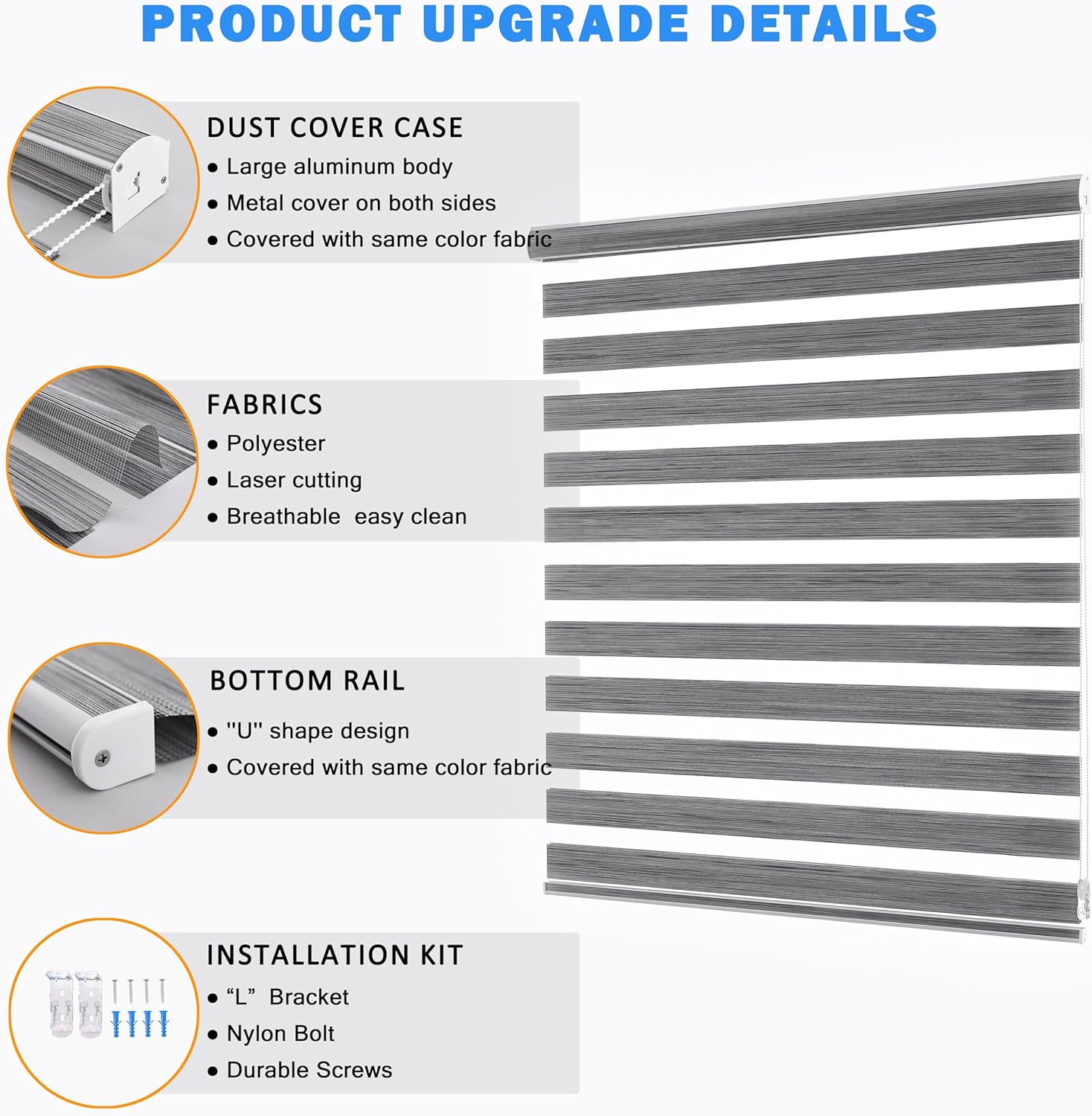 - Zebra Blinds for Windows with a premium polyester fabric - High-End Quality - Easy to install - Easy to clean,Grey Color 29 inch Width.