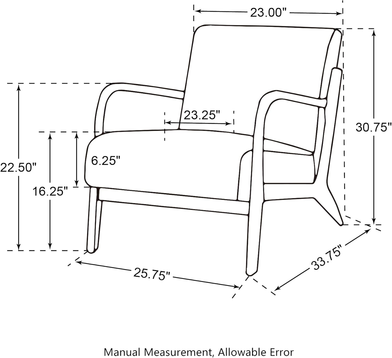 - Size: Overall Dimension: 25.75 ”L x 33.75 ”W x 30.75 ”H, Seat height: 16.25" Holds over 330lbs with its wooden frame, solid Rubberwood frame for long-lasting durability