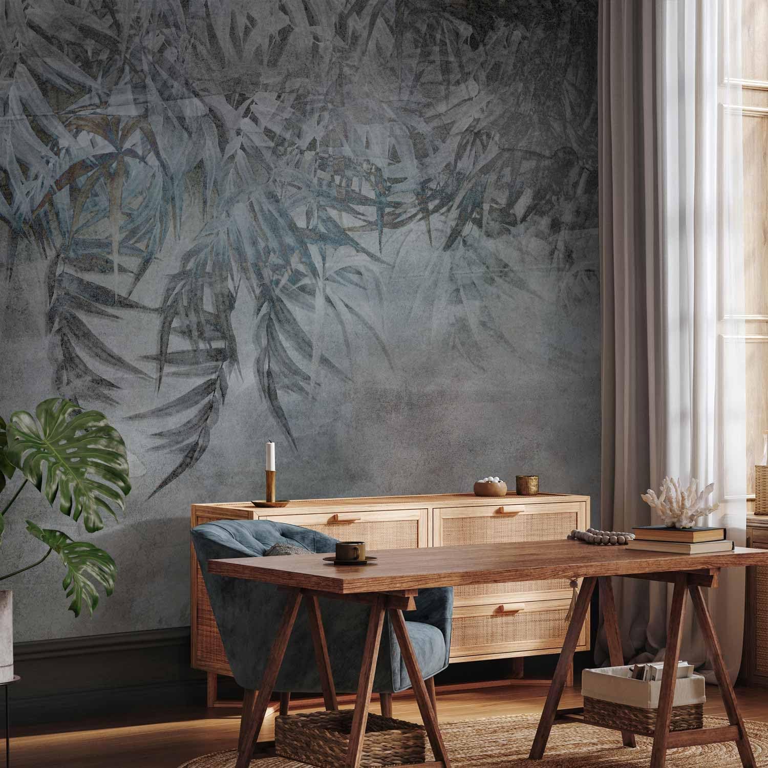 artgeist Wall Mural Leaves 98x69 in - XXL Non-Woven Wallpaper Fleece Wall Decor Photo Print Picture Image Design Palm Leaves Concrete Nature Grey b-C-10103-a-a