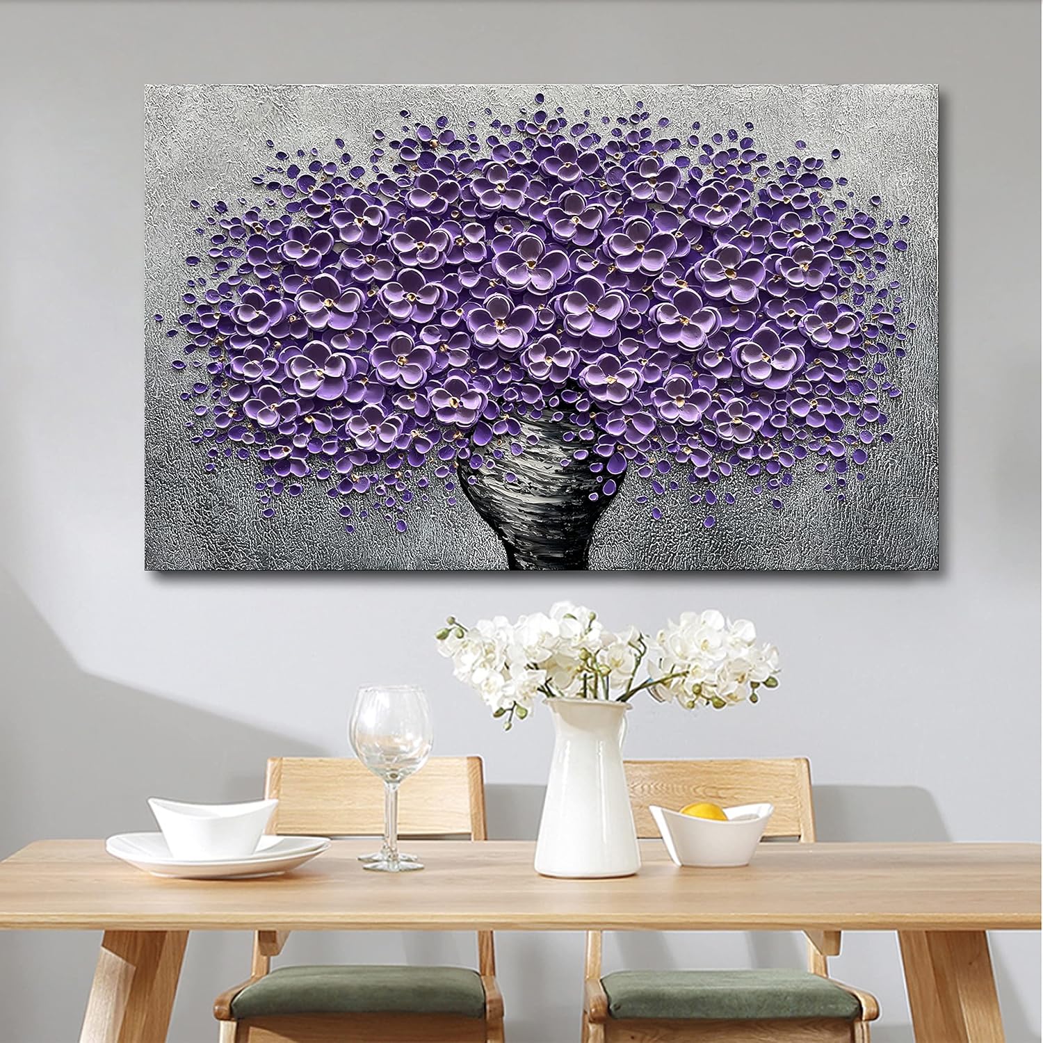 Epicler art hand-painted purple 3D flower decorative oil painting, flower wall decorative frame wall Art, modern Art living room, bedroom, office, hotel restaurant wall Art 28x40 inch
