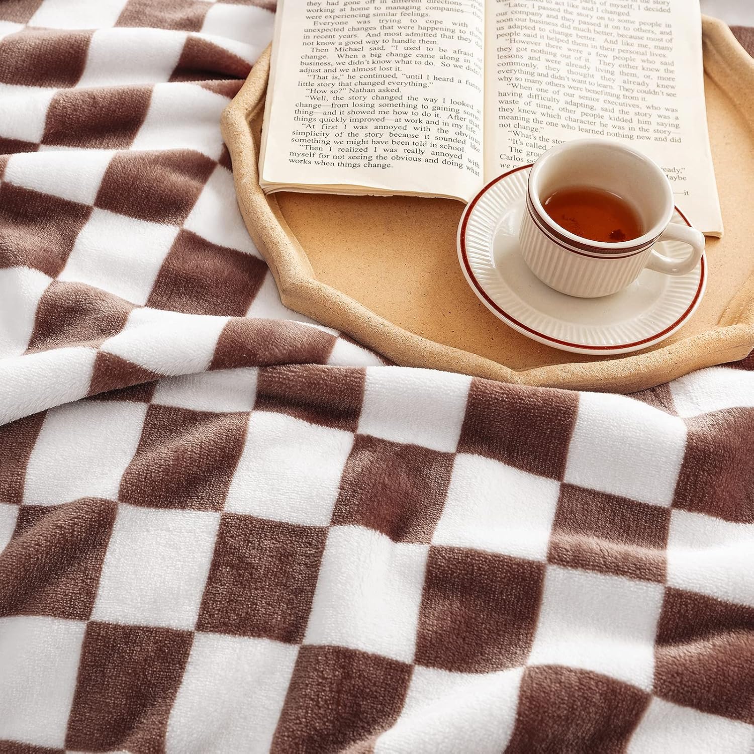 LOMAO Throw Blankets Flannel Blanket with Checkerboard Grid Pattern Soft Throw Blanket for Couch, Bed, Sofa Luxurious Warm and Cozy for All Seasons (Coffee, 50"x60")