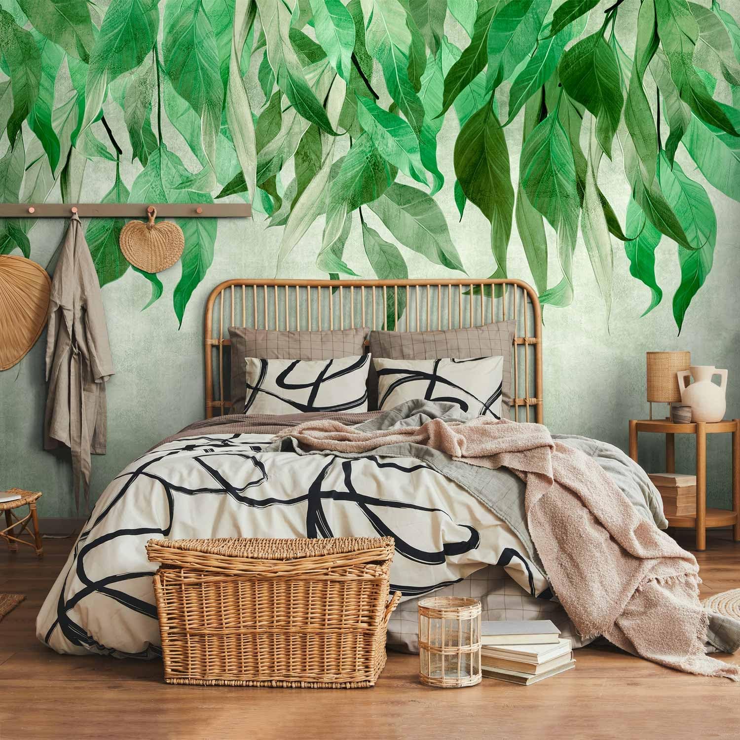 artgeist Wall Mural Hanging Leaves 79x55 in - Non-Woven Wallpaper Fleece Wall Decor Photo Print Picture Image Design Nature Botanical Concrete Green Like Painted b-C-10146-a-a