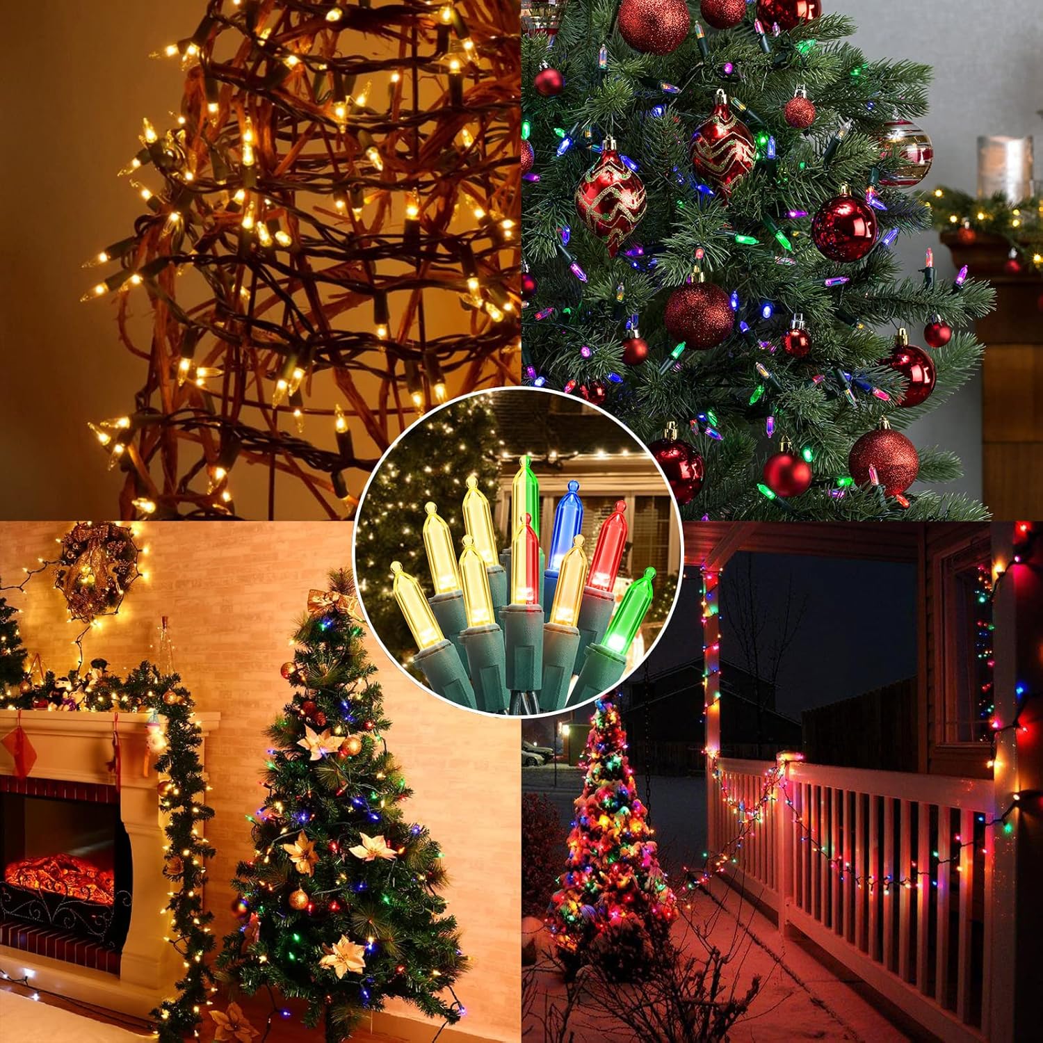 - Perfect Lighting Decorations: Green wire led christmas string lights, warm white+multicolor, create a warm or colorful atmosphere for you. Low power consumption, no heat. Perfect for wedding, bedroom, shopping mall, patio, christmas decoration!