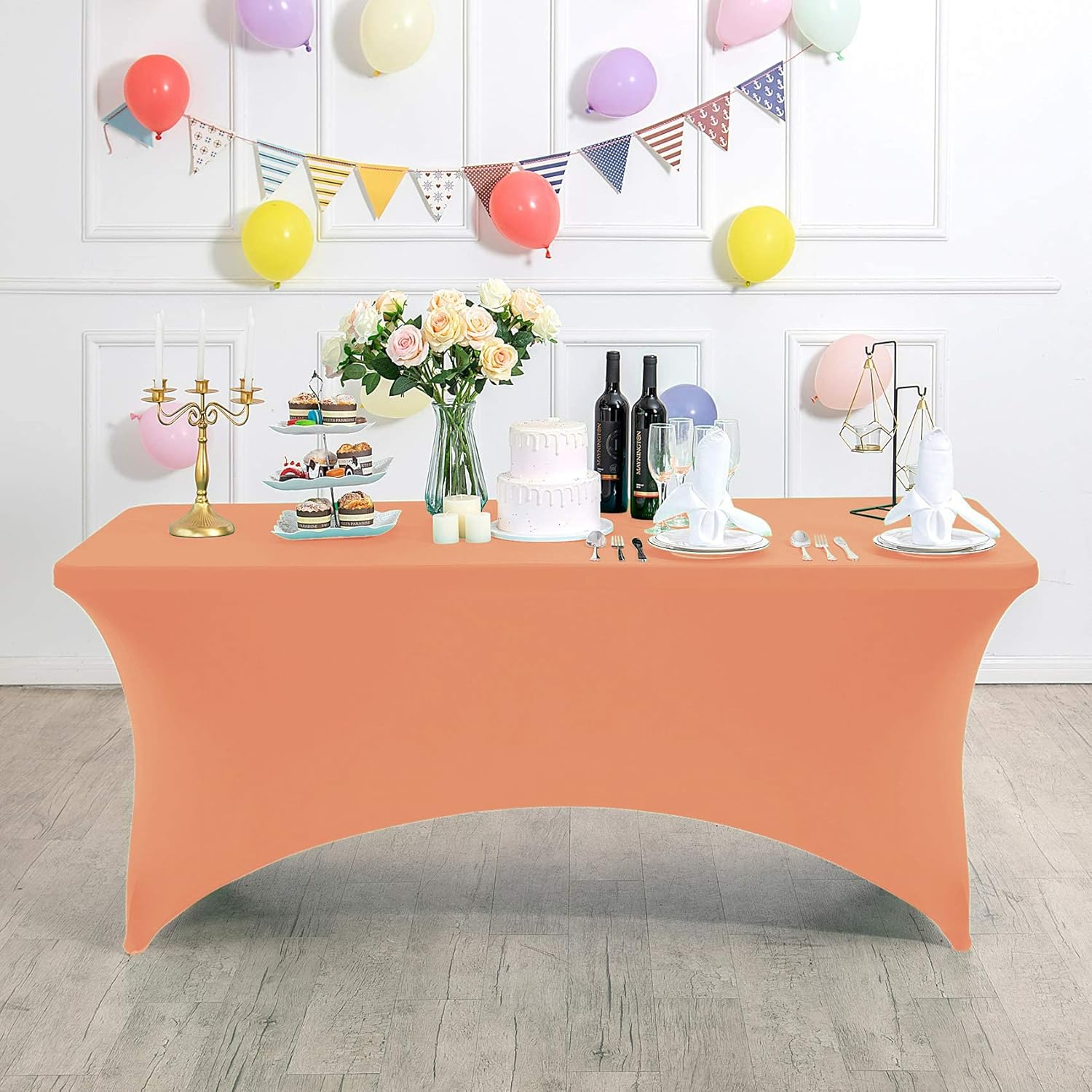 Spandex Table Cover for 6Ft or 4fT or 8ft Table Universal Fitted Stretch Tablecloth for Party, Banquet, Wedding and Events-Peach
