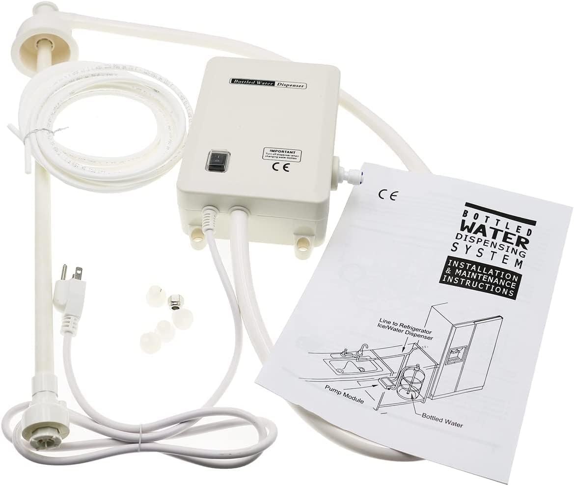 - High Compatibility: Water pump for refrigerator ice maker can be easily installed under counter. Suitable for universal 2-5 gallon water bottle connections, faucets, refrigerators, ice machines, coffee makers, hot and cold water dispensers, etc.