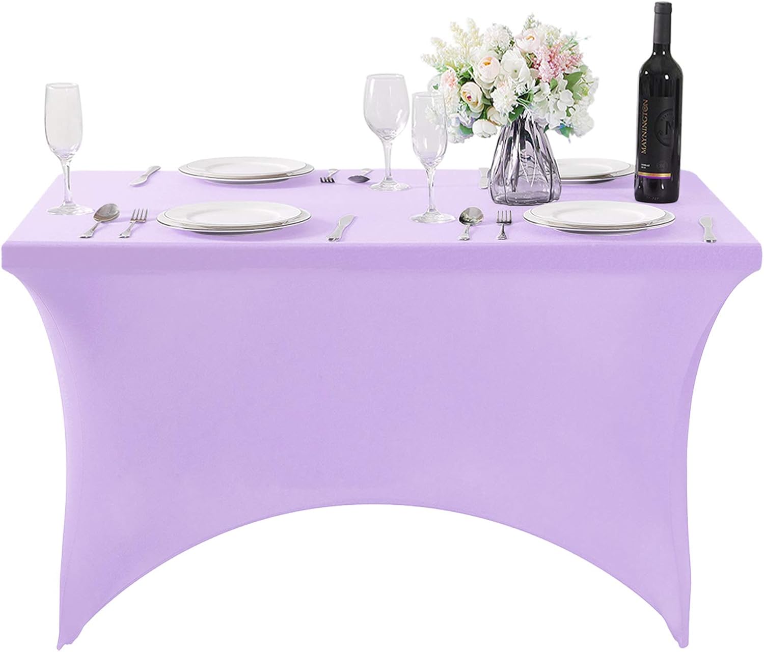 SuperO 2Pack Waterproof Spandex Table Cover for 4FT Table Universal Fitted Stretch Tablecloth for Party, Banquet, Wedding and Events-Lavender