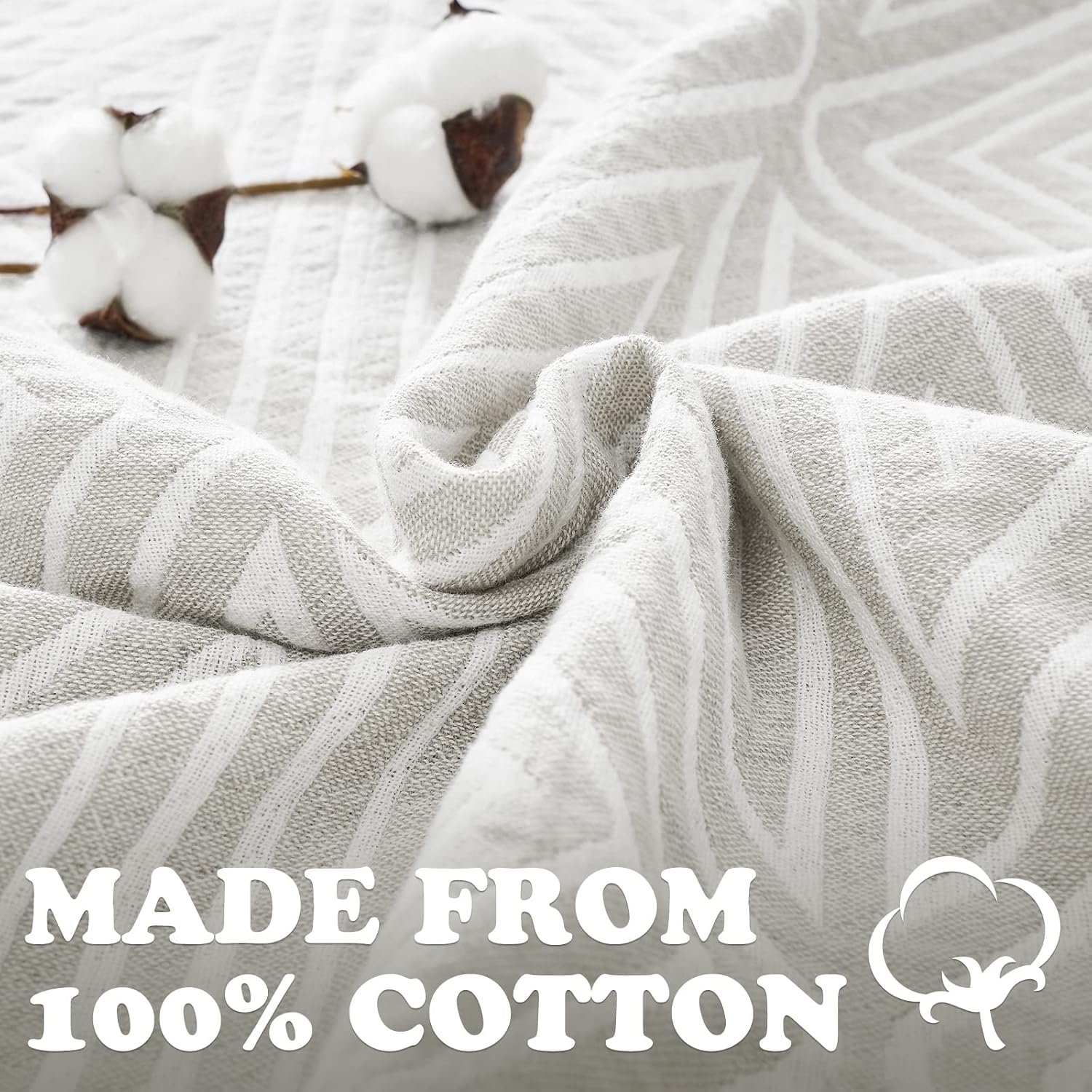 jinchan Boho 100% Cotton Blanket Muslin 50x60 Inches Lightweight 3-Layer Geometric Triangle Striped Pattern Reversible Quilt Throw Soft Breathable Comfy All Seasons for Couch Bed Decor, Light Grey