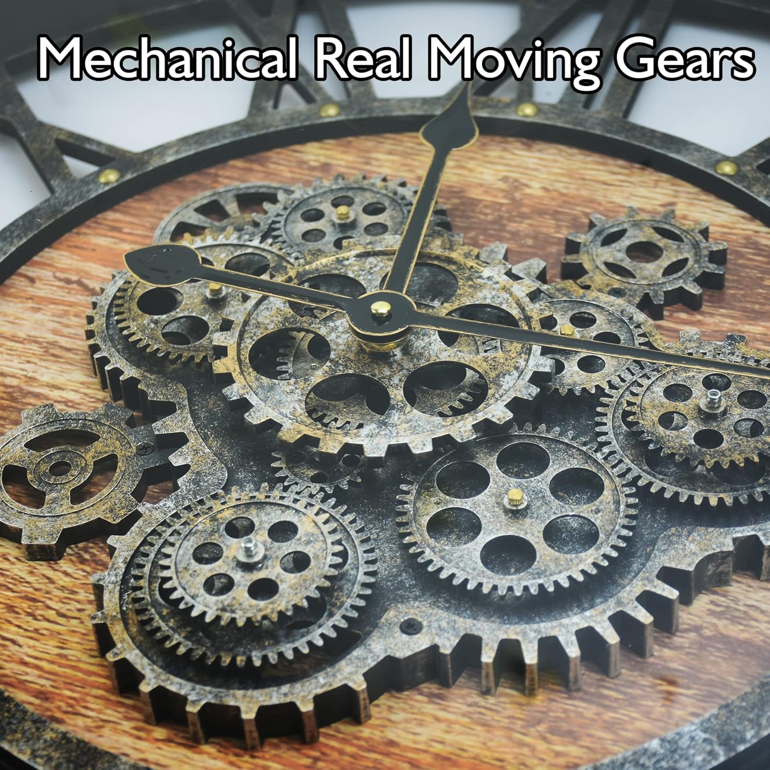 - Real Moving Gears Wall Clock: The rustic wall clock is design with multi-real moving gears, put battery in, various gears start working, makes a subtle relaxing sound and makes a living element in the environment in where it is placed, vintage and magical, catch all eyes of visits