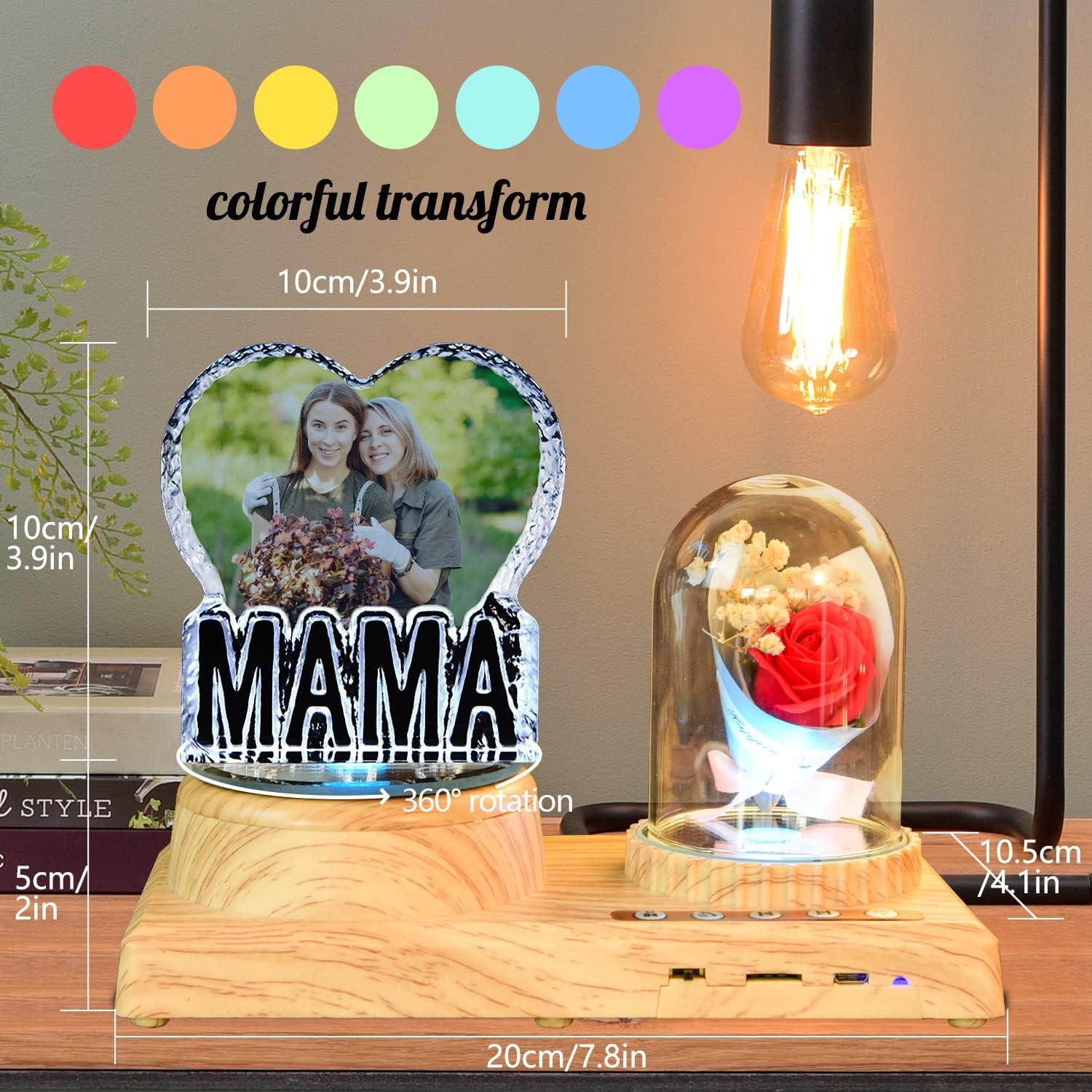 MAMA Crystal custom picture-personalized 3D Crystal Photo frame, birthday gifts, anniversary, wedding gift, gift for Mother's Day Gifts for Mom, Wife and Daughter, Rose-MAMA