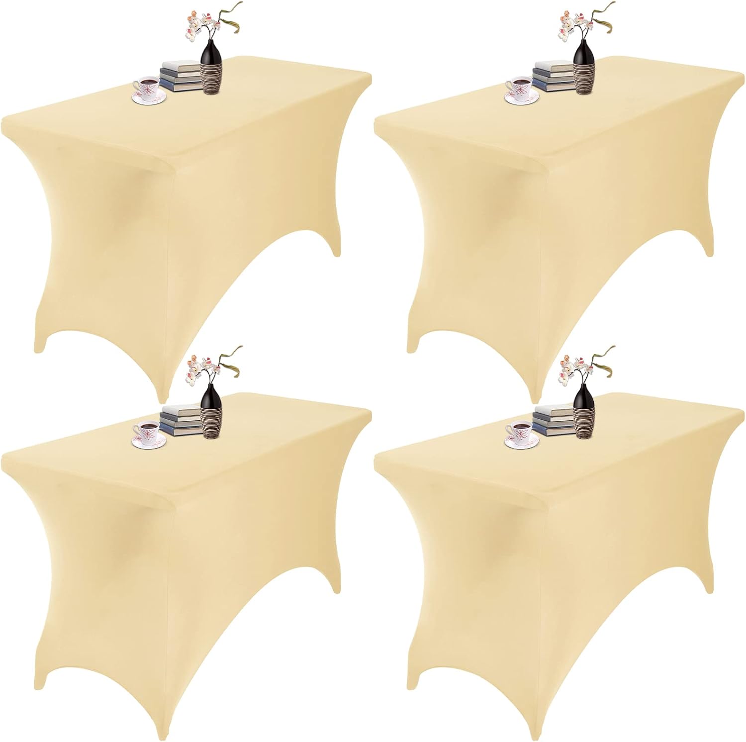 4Pack Spandex Waterproof Table Covers 4ft,Spandex 4ft Waterproof Table Cover for Party,Wedding, Banquet, and Events(Champagne)