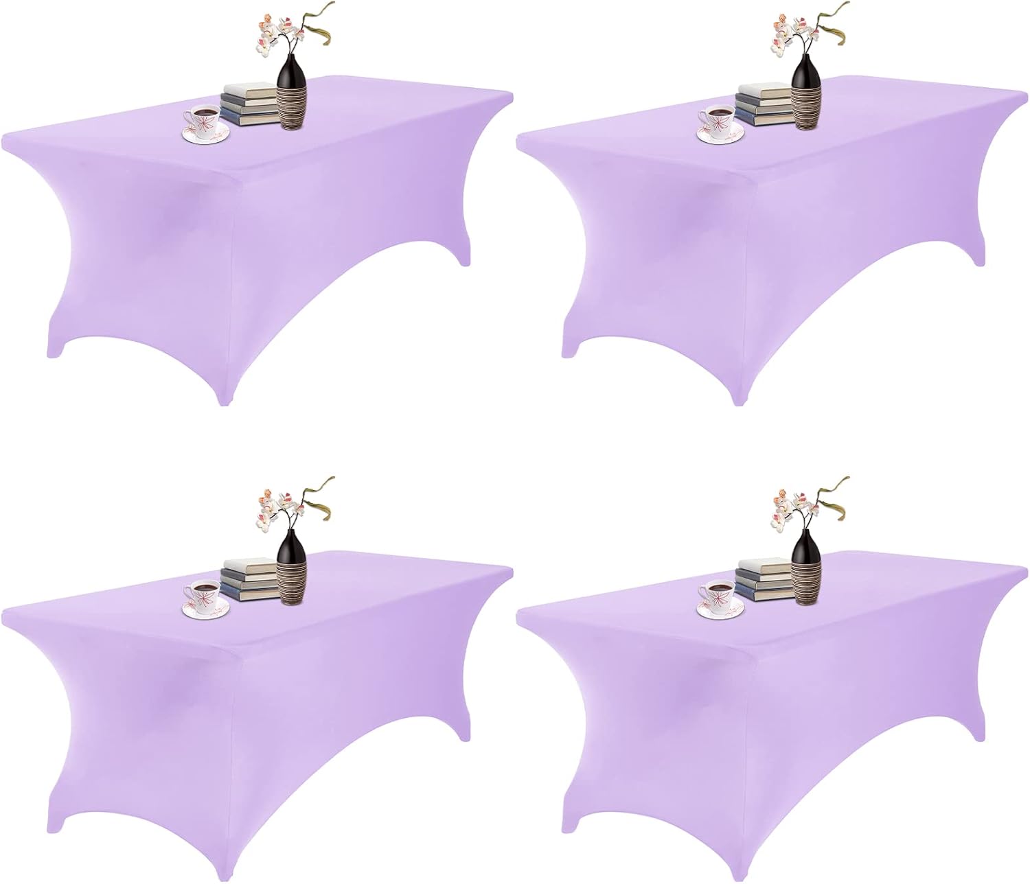 4Pack Spandex Waterproof Table Covers 8ft,Spandex 8ft Waterproof Table Cover for Party,Wedding, Banquet, and Events(Lavender)