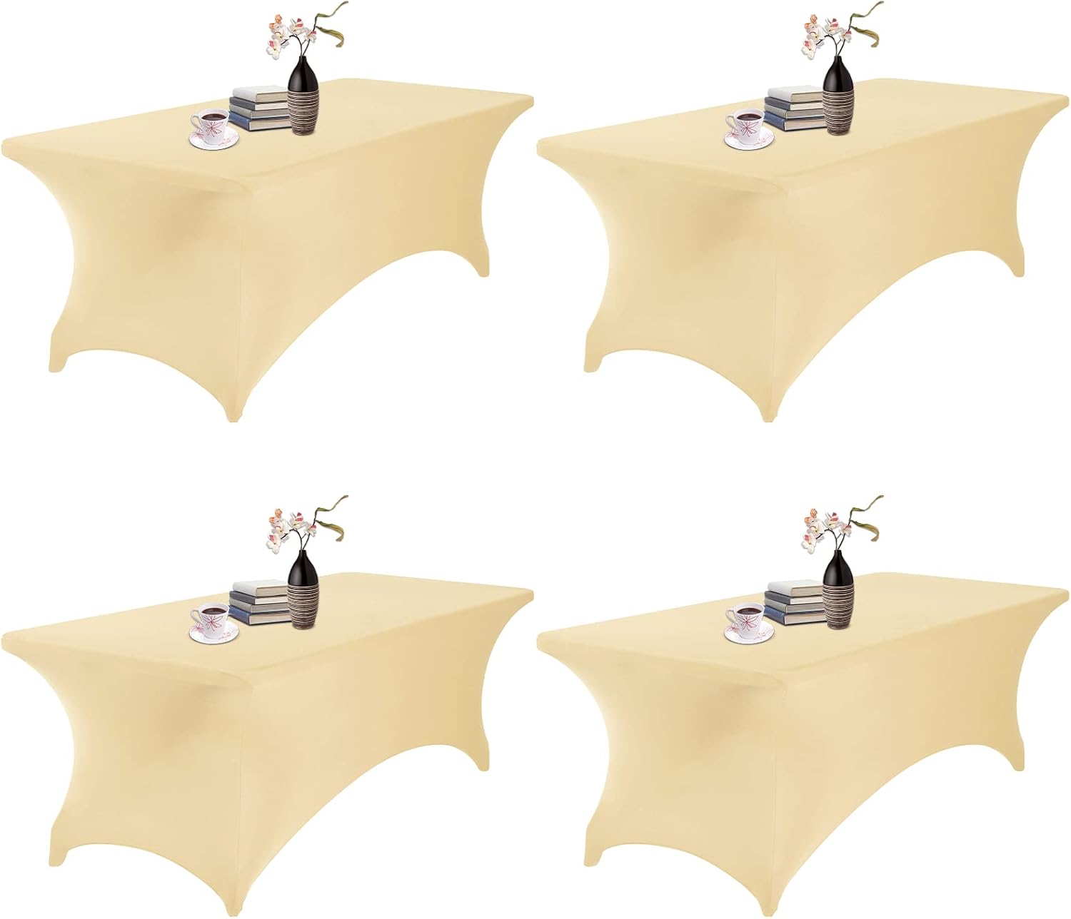 4Pack Spandex Waterproof Table Covers 8ft,Spandex 8ft Waterproof Table Cover for Party,Wedding, Banquet, and Events(Champagne)