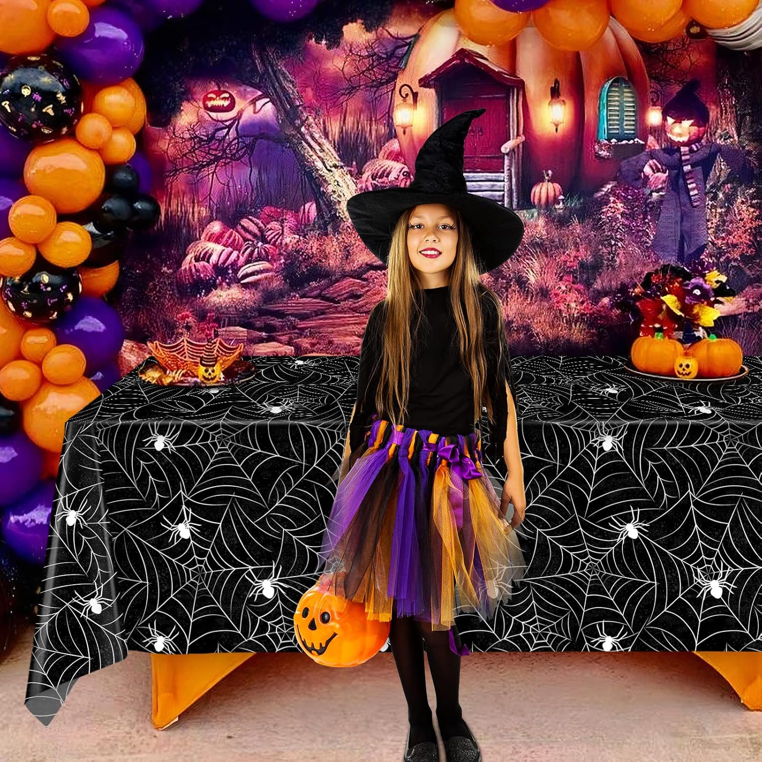 - Halloween Decoration Tablecloth - Package include 3 pieces plastic Halloween spiderweb tablecloths. Measures about 54" X 108". Serve your Halloween holiday themed parties hosting purpose.