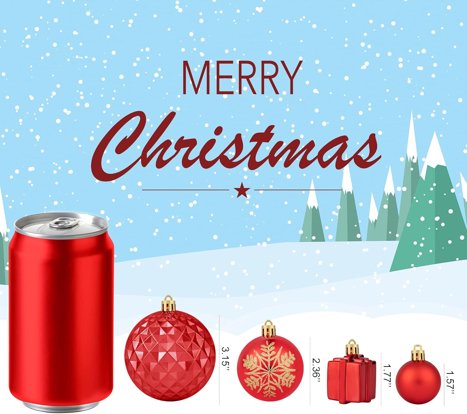 - 【Christmas Ball Ornaments】 This red assorted Christmas ornament set contains 116PCS of Christmas balls in 18 styles, includes various shapes, sizes, such as 1.57” / 2.36” / 3.14” Christmas ball, stocking , bell, and gift. It's your call to complete your Christmas decoration with these beautiful balls ornaments set, and make the Christmas season more memorable and unique