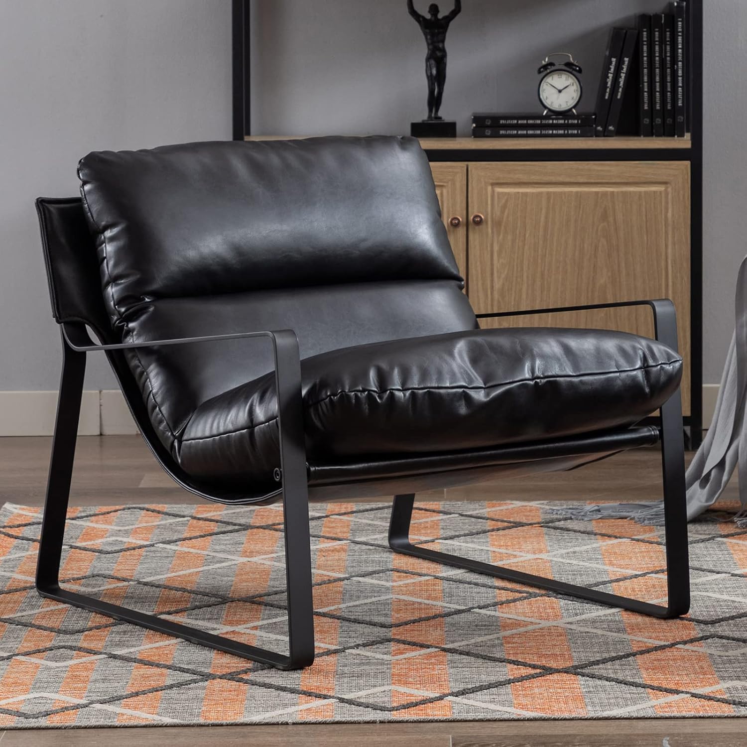 DUOMAY Mid-Century Accent Chair Armchair, Comfy PU Leather Leisure Chair Lazy Chair with Metal Leg for Living Room Bedroom Office Apartment, Black