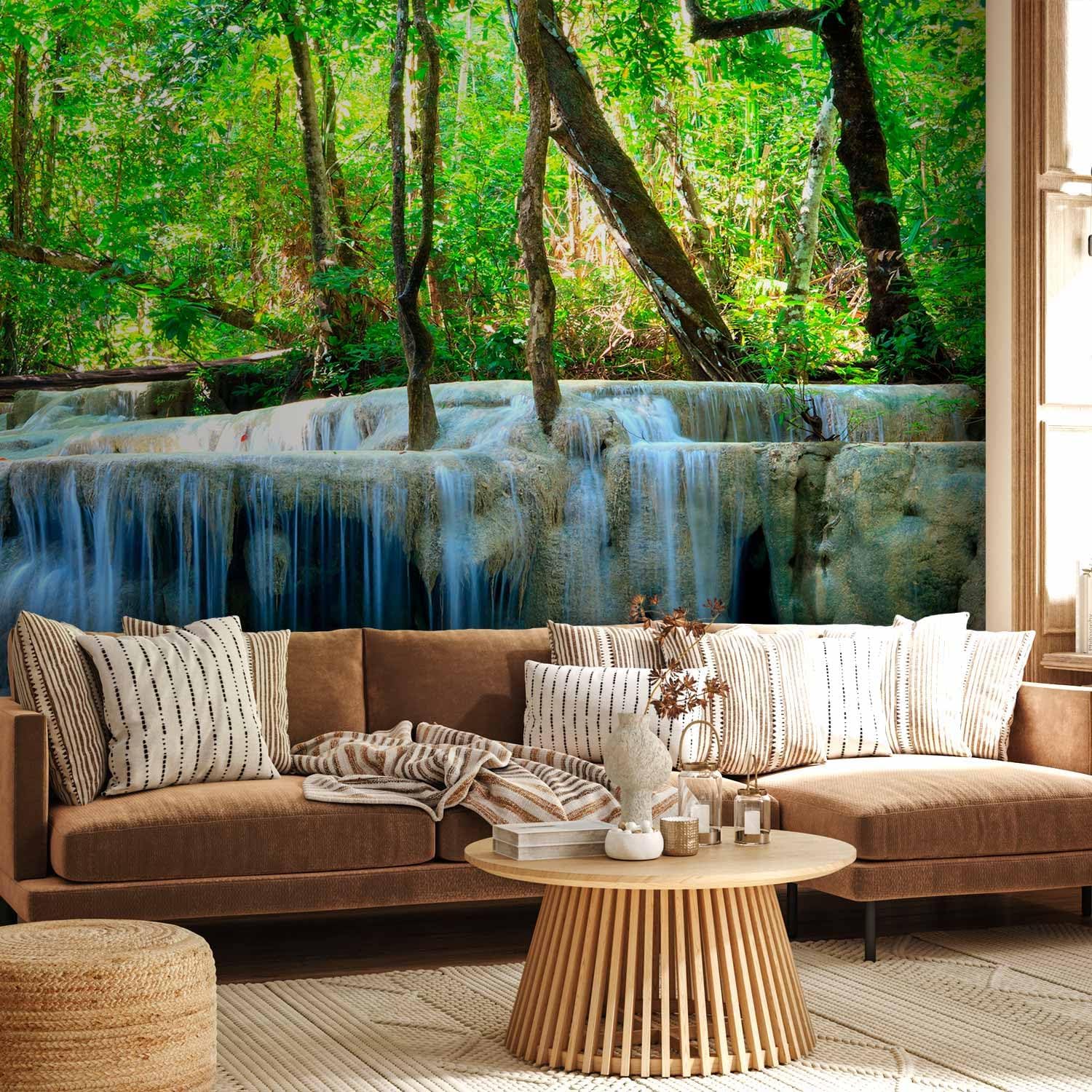 artgeist Wall Mural Peel and Stick Waterfall Landscape 212x98 in - XXL Self-Adhesive Corner Wallpaper Removable Large Sticker Foil Angle Wall Decor Print Nature Forest Tree Green c-B-10074-a-a
