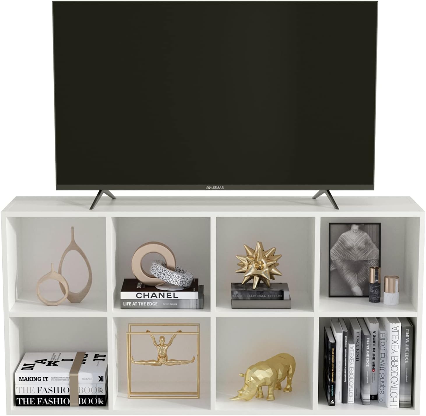 8-Cube Storage Shelf Bookcase - Wooden 4-Tier Floor Standing Open Bookshelf, Modern TV Stand up to 55 Inchs for Home and Office, Warm White