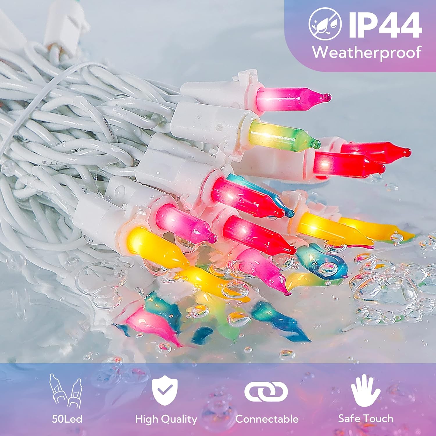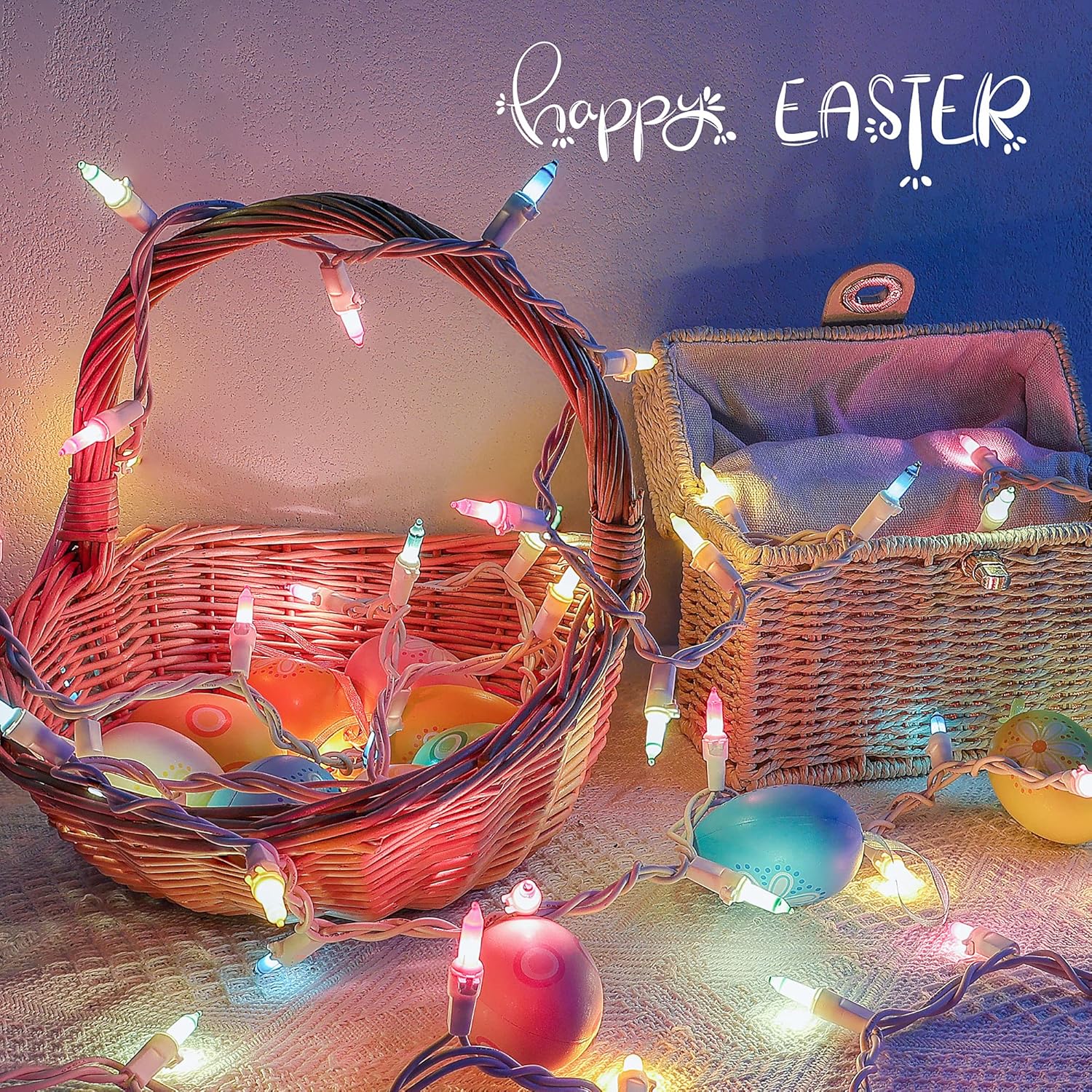 - 🌲Light up your Easter:Mimigogo 13ft 50 count Multicolor mini string lights is with white wire,which comes with 2 Extra Bulbs and 2 Replacement Fuses. In addition, our wires is more durable compared with other string lights. You can use it for a long time without fear of burning it out.