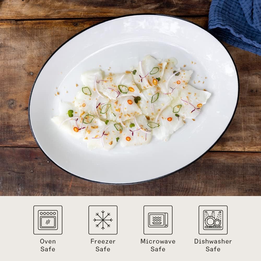 Made In Cookware - Serving Platter - White With Black Rim - Porcelain - Crafted in England