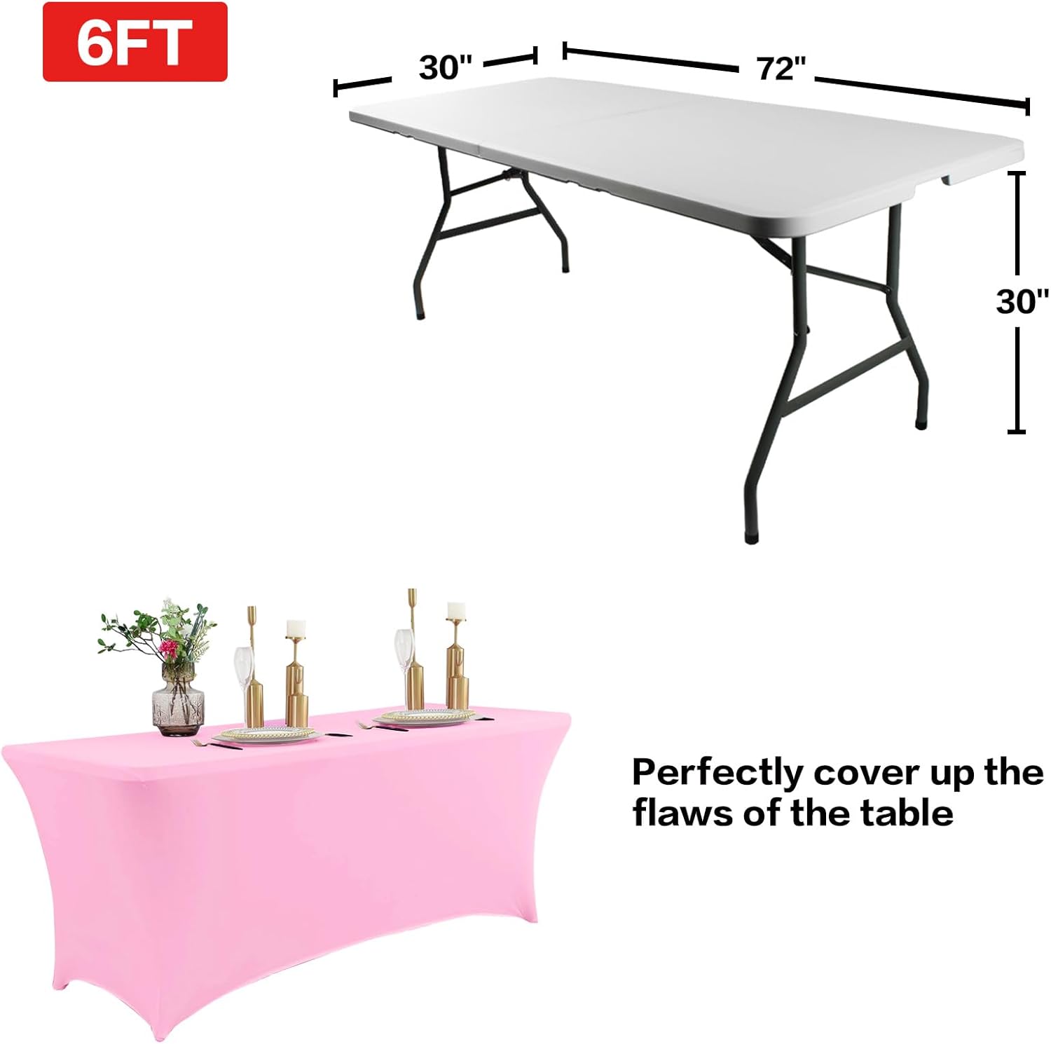 IVAPUPU 8FT Table Cloth for Rectangular Fitted Events Stretch Pink Table Covers Washable Cover Spandex Tablecloth Protector for Party, Wedding, Cocktail, Banquet, Festival
