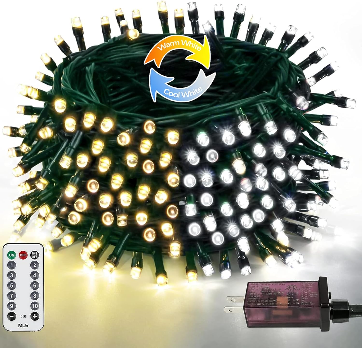- Unique Two Colors & 9 Lighting Modes: This light comes in two colors,Warm White and Cool White. 9 lighting modes are available, you can choose Warm White and Cool White by remote, which is equivalent to having two strings of lights. Different colors and flash modes will make your holiday decorations more colorful!